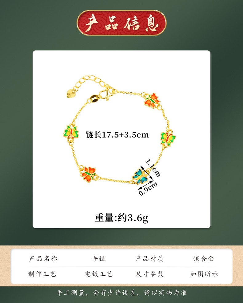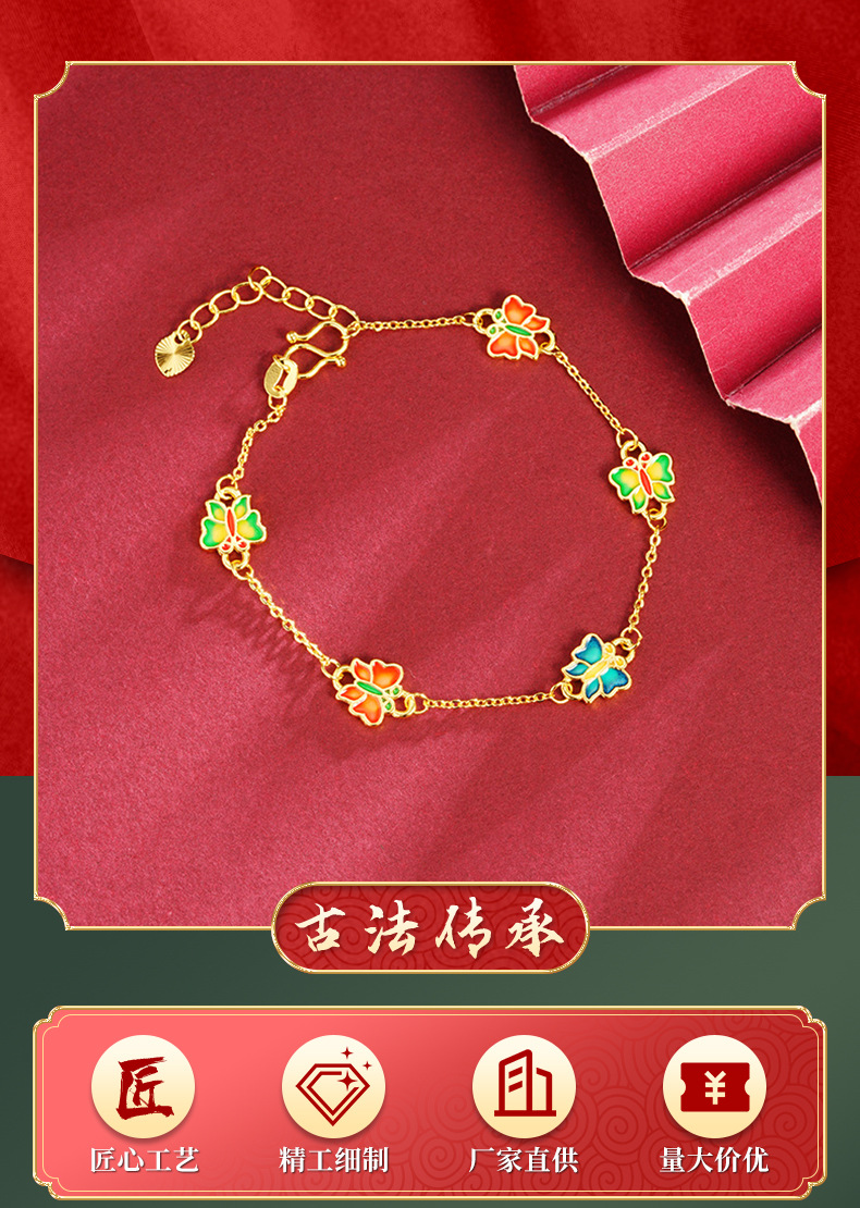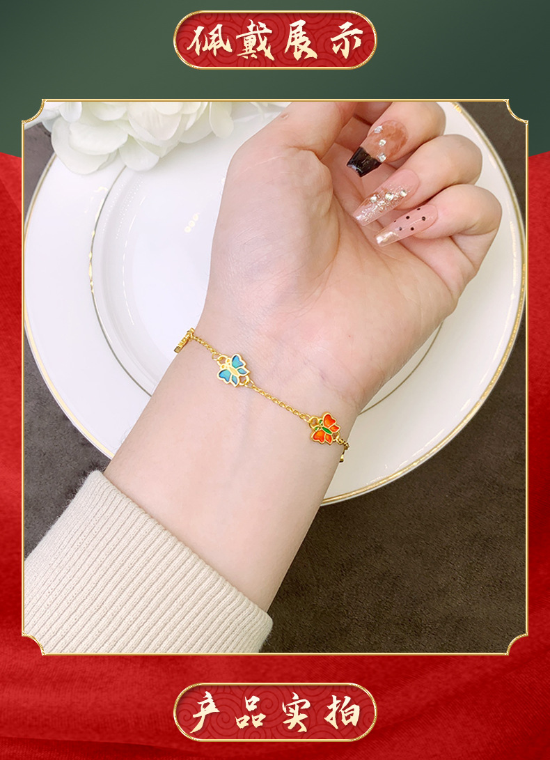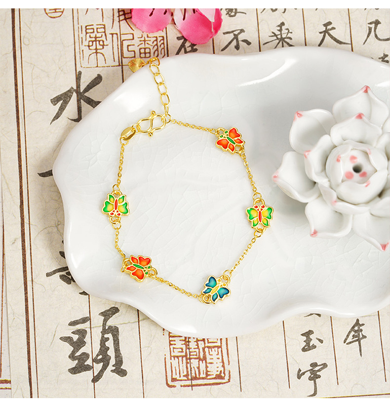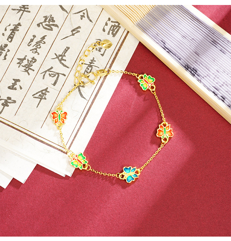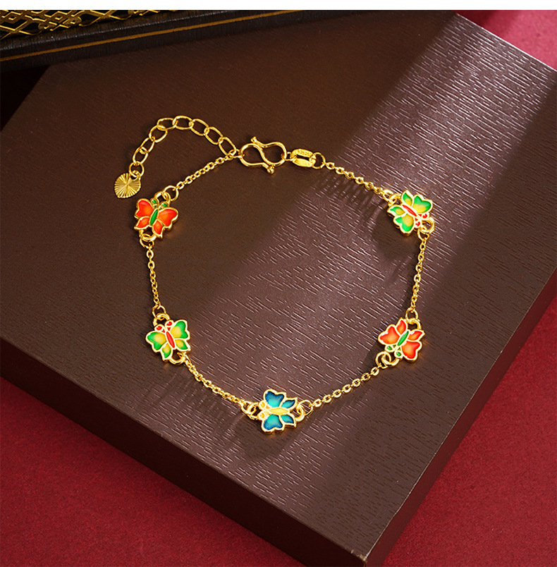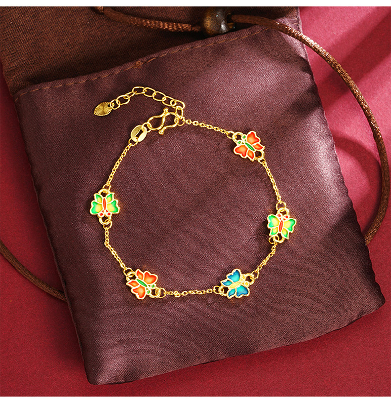 Nueva pulsera de oro antiguo estilo chino estilo palacio esmalte mariposa simple pulsera mujer no se desvanece joyas de mano