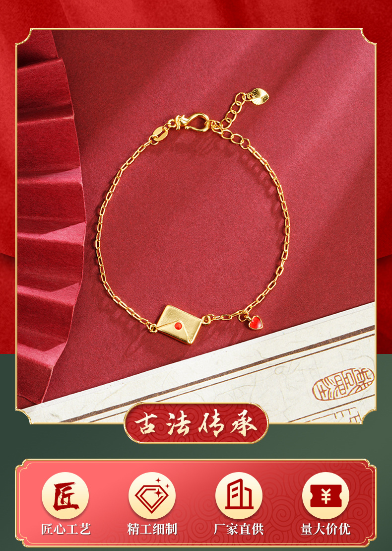 Nuevo chino vietnamita pulsera de oro de arena ligera de lujo goteo de aceite carta de amor pulsera de amor rojo mujer simple joyas de alta calidad al por mayor