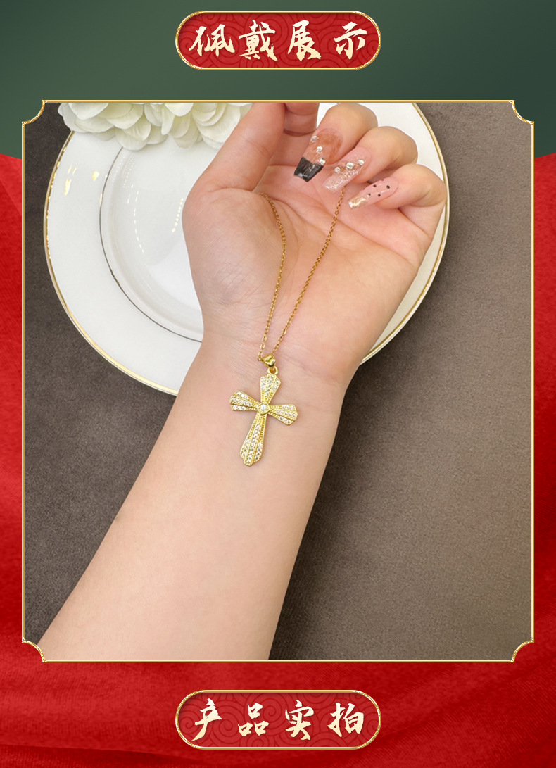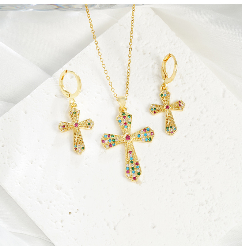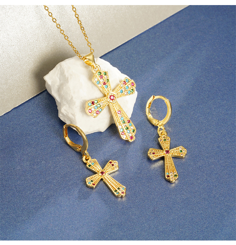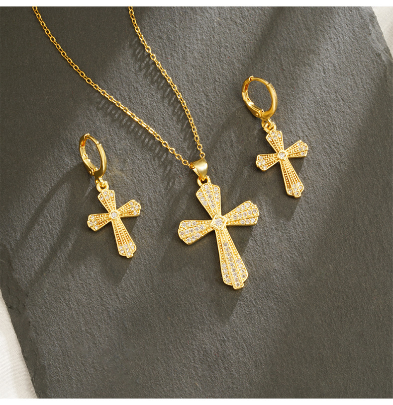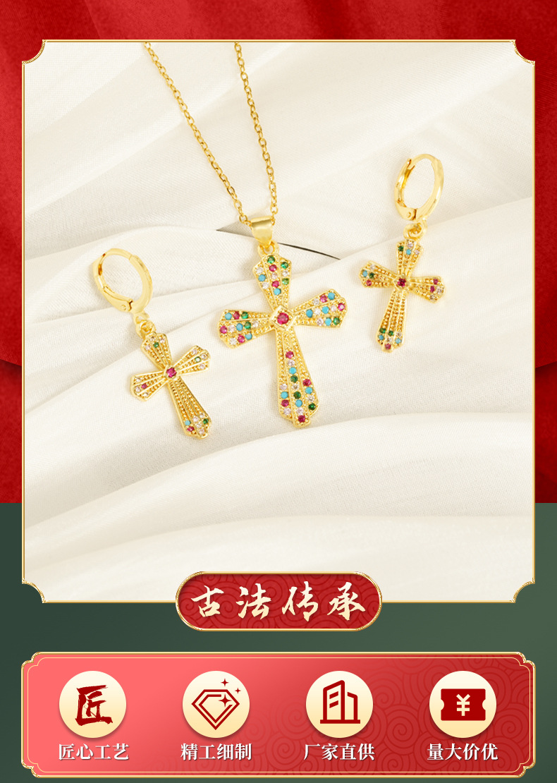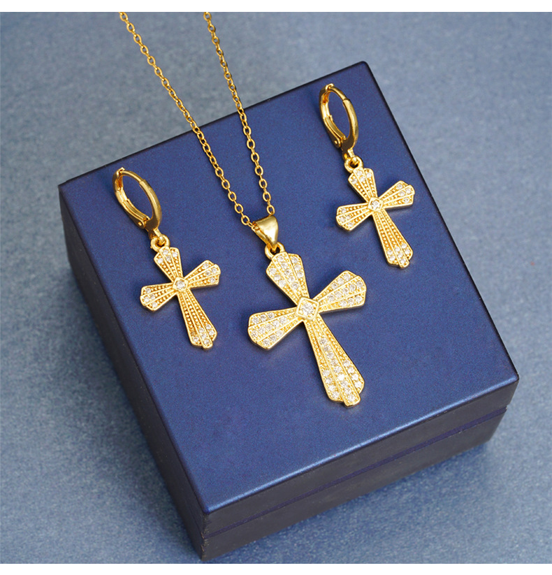 Transfronterizo estilo europeo y americano collar de oro de arena vietnamita ligero lujo texturizado pendientes de cruz para mujeres no se desvanecen joyas
