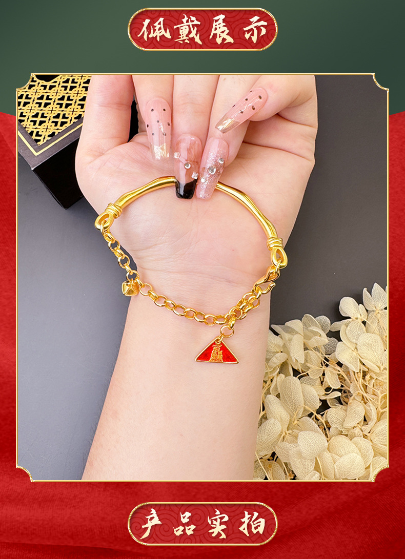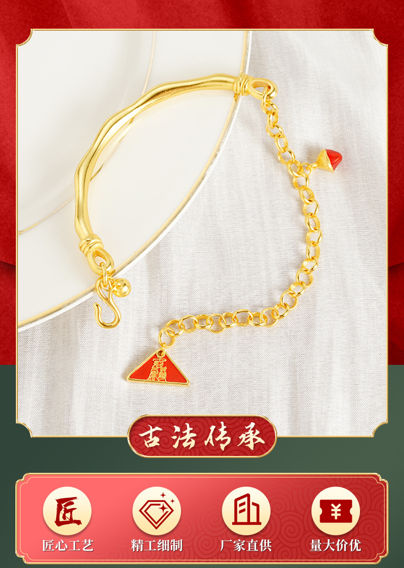 Antiguo método de oro de arena de Vietnam chino arremetiendo azul auspicioso triángulo curvo brazalete joyas pulseras de lujo ligeras al por mayor suministro
