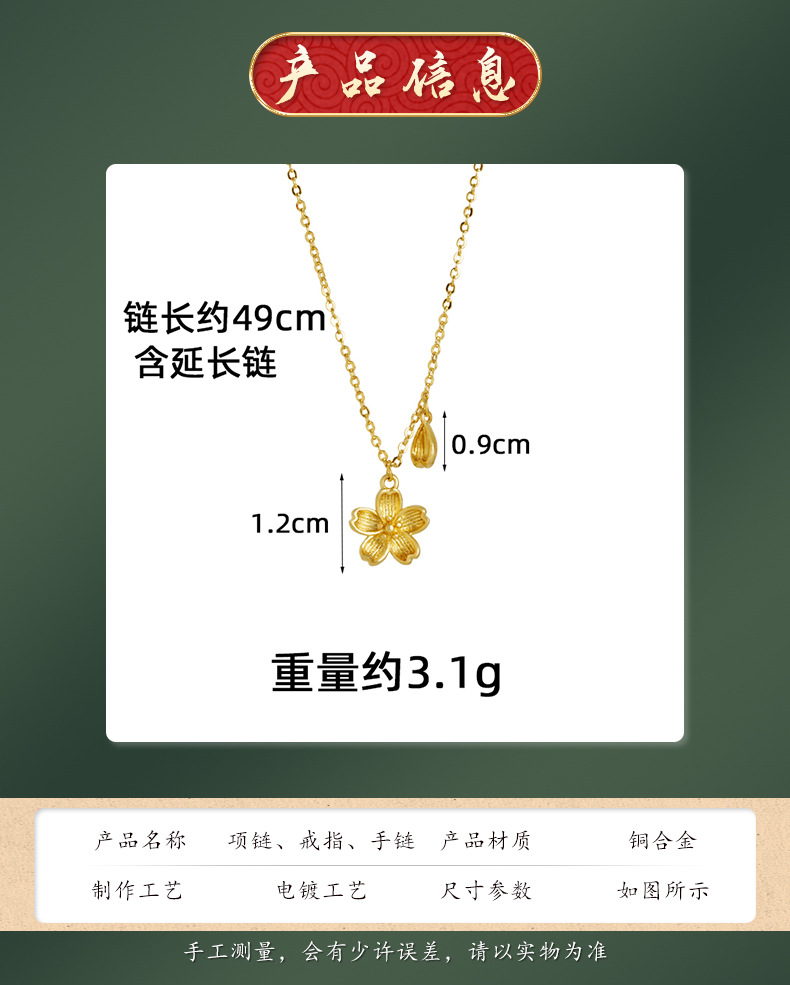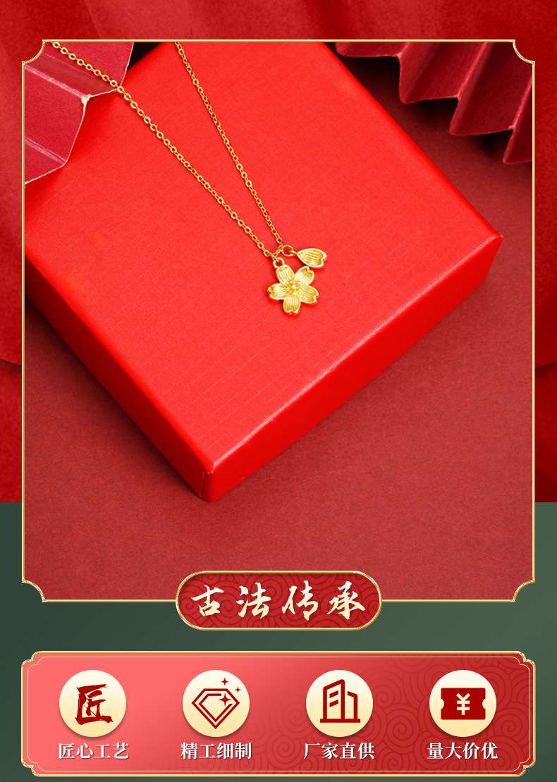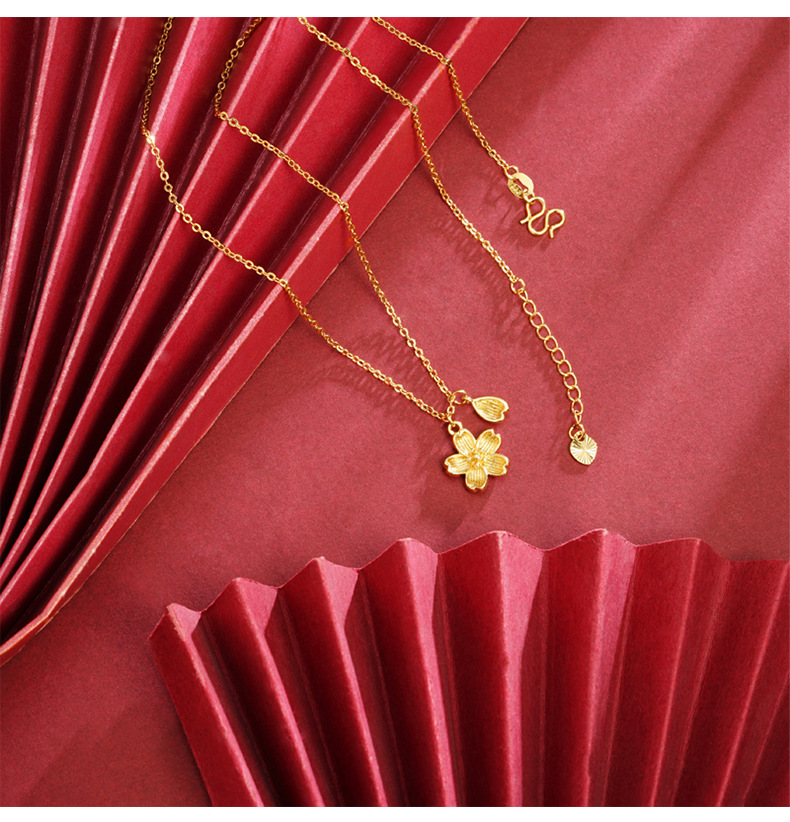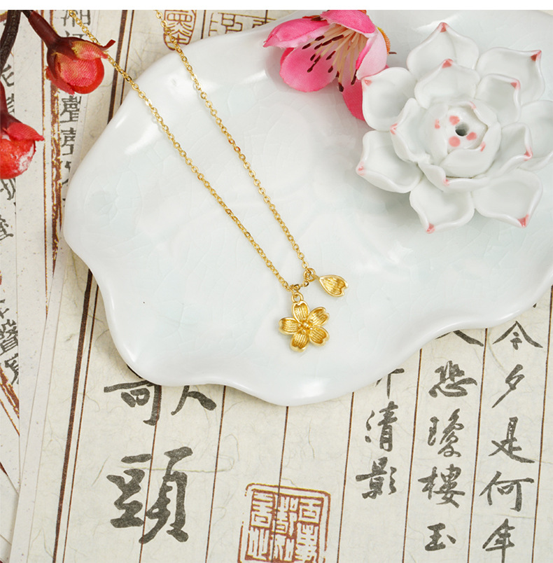 Nuevo estilo chino antiguo collar de oro Fasha de moda nacional petal de flor de melocotón cadena de clavícula retro de alta calidad joyas no se desvanecen