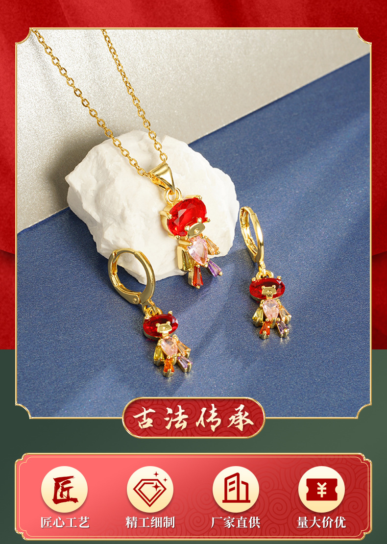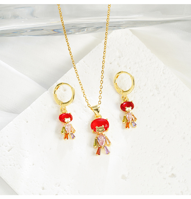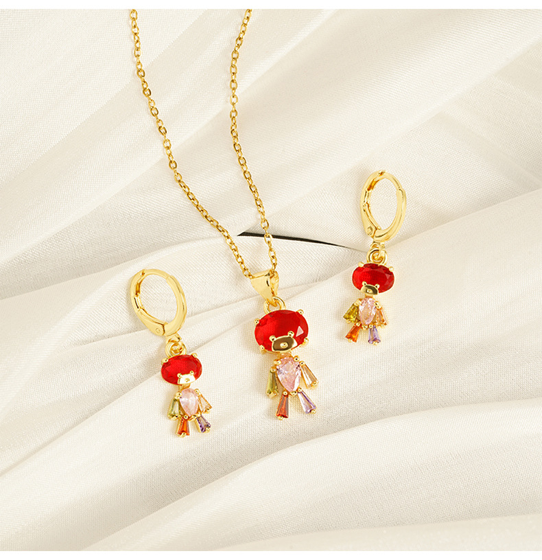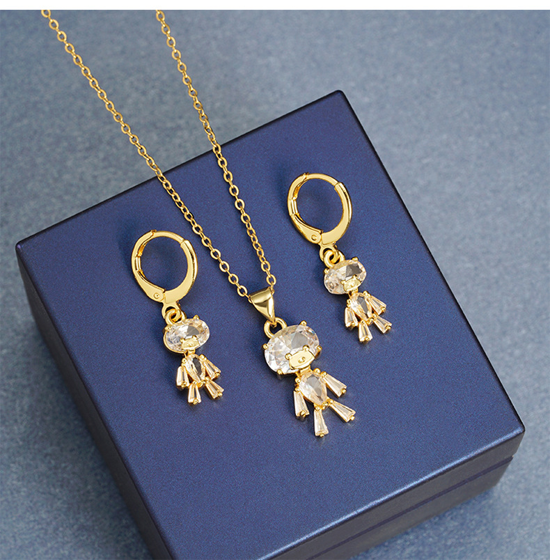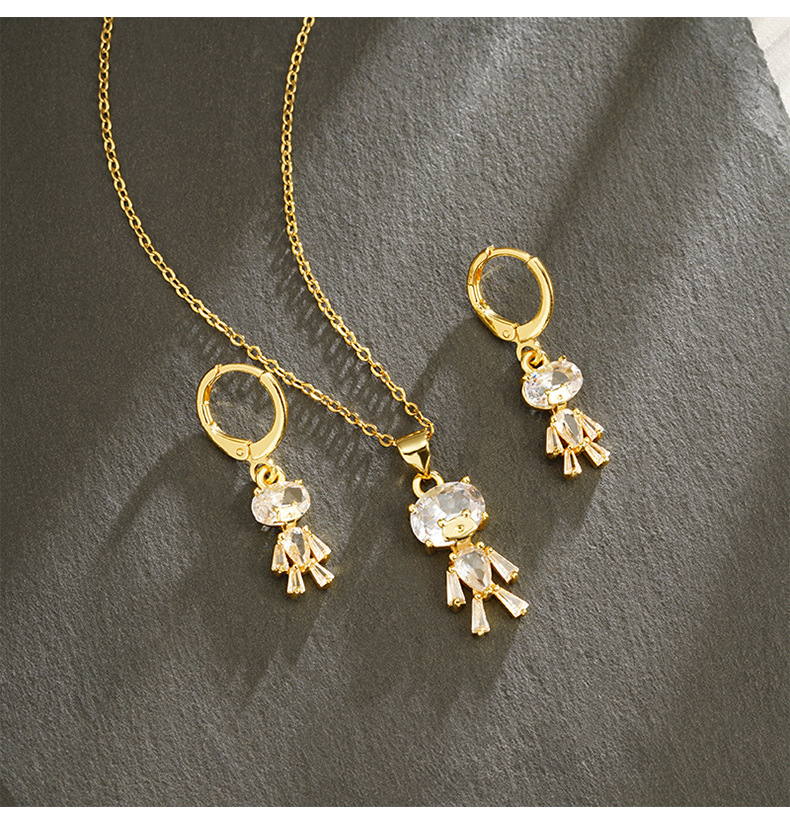 Collar de oro de arena transfronteriza vietnamita lujoso ligero estilo de lujo con aretes de oso pequeño conjunto de moda femenina temperamento no se desvanece joyas