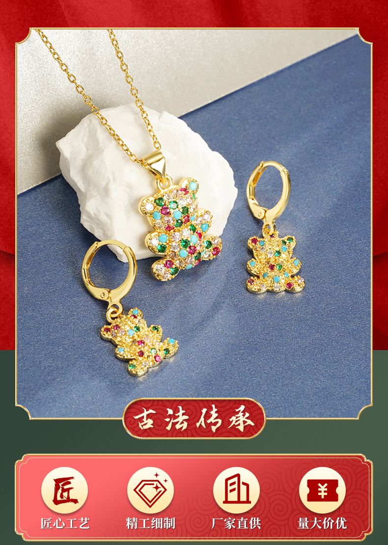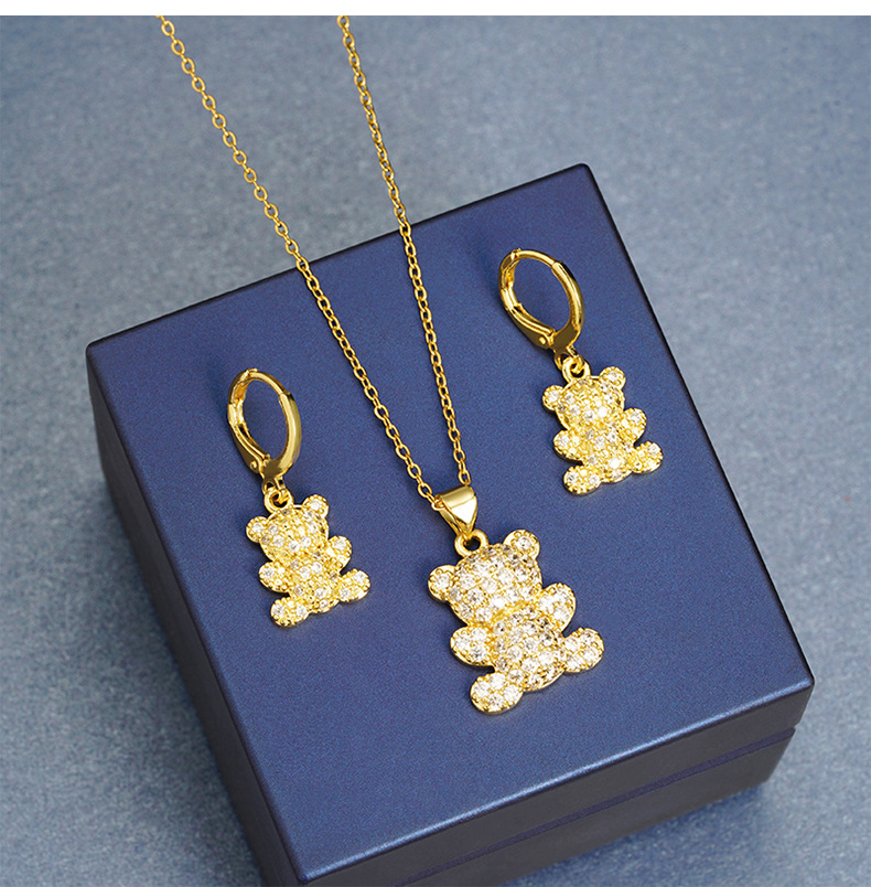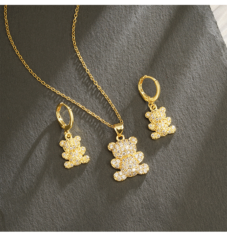 Transfronterizos Vietnam arenas collares de oro de estilo europeo y americano con diamantes osos pequeños set de pendientes femeninos no se desvanecen joyas