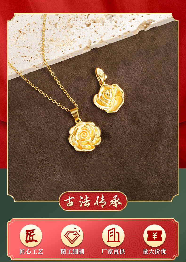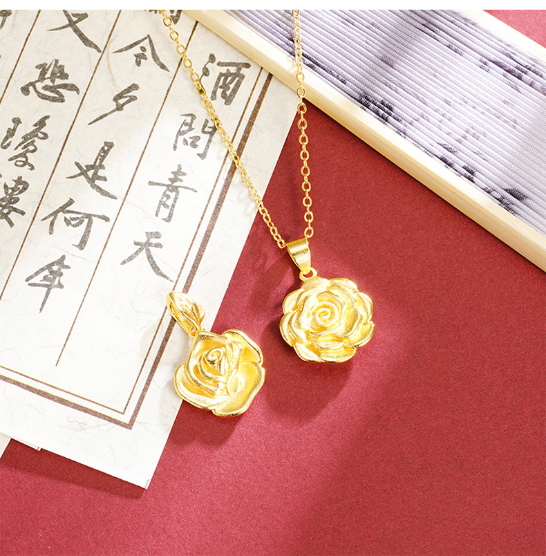 Guochao antiguo colgante de oro de palacio peonía rosa colgante de oro para niños de aleación de cobre universal joyas no se desvanecen