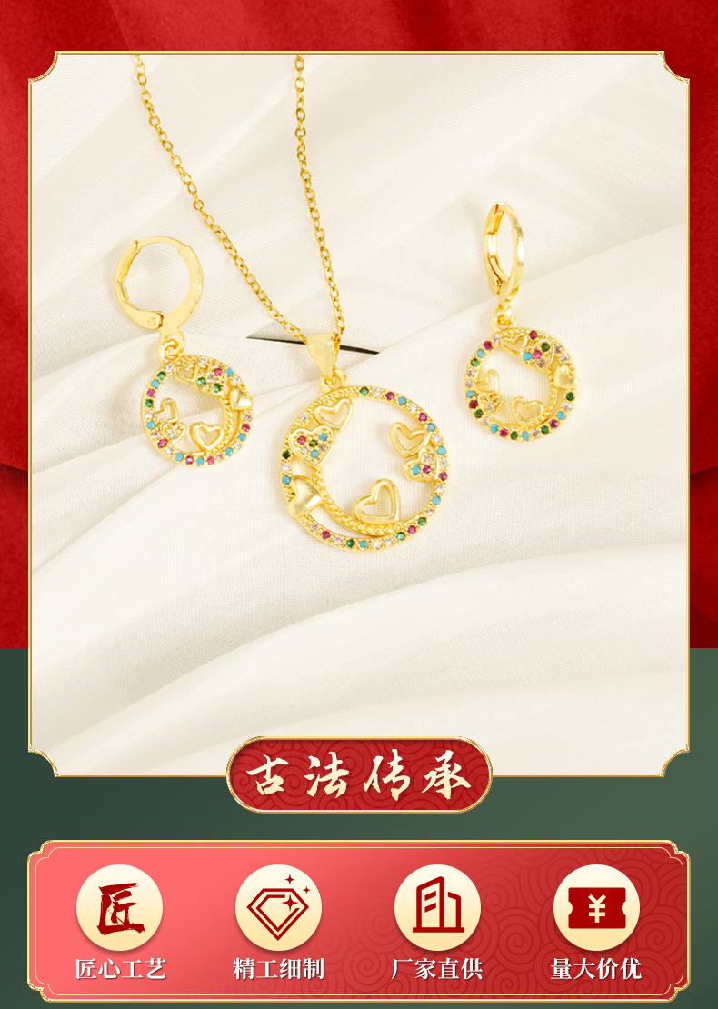 Nuevo collar chino de oro de arena vietnamita estilo europeo y americano estilo de diamante en forma de anillo de orejas femeninas no se desvanecen joyas