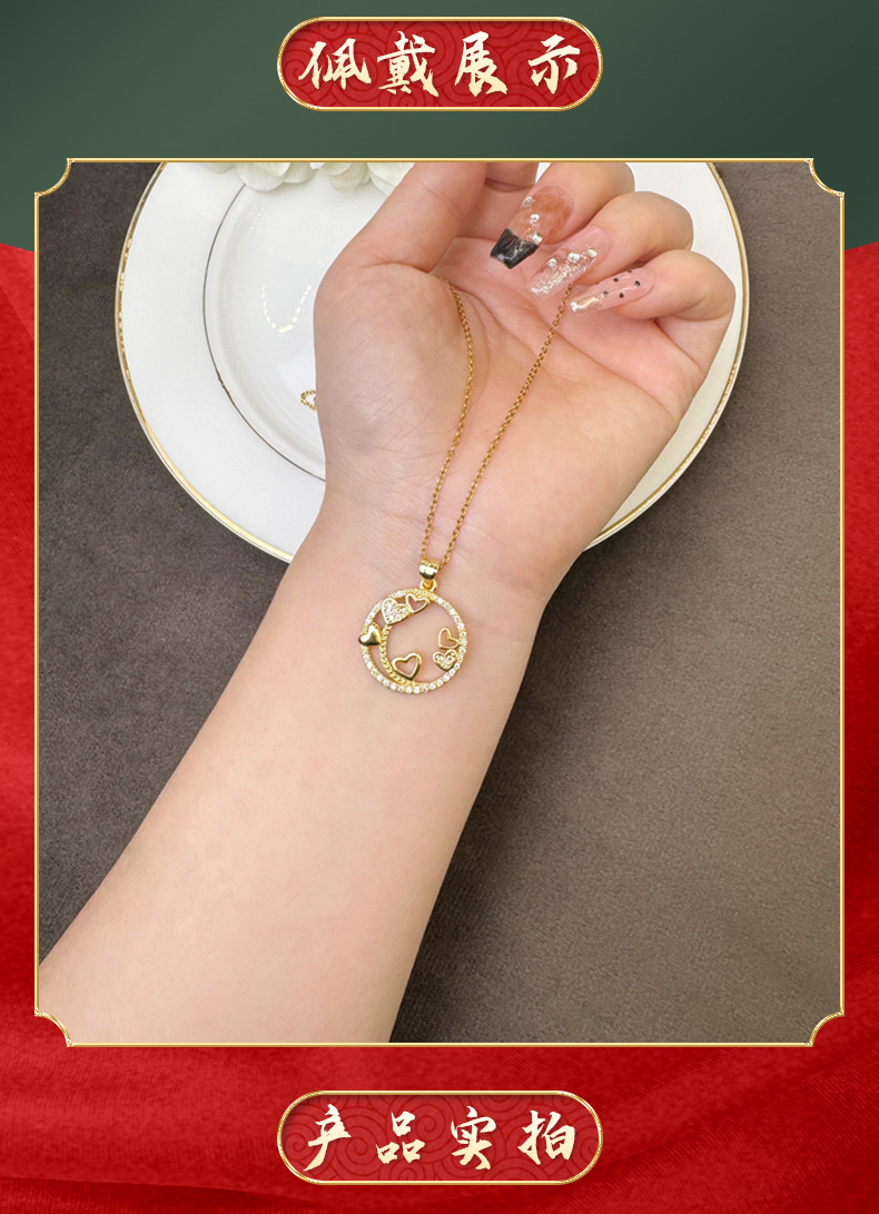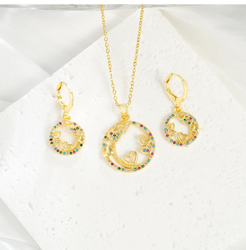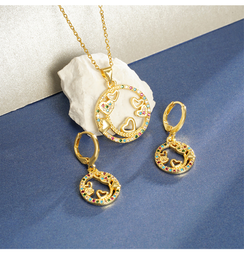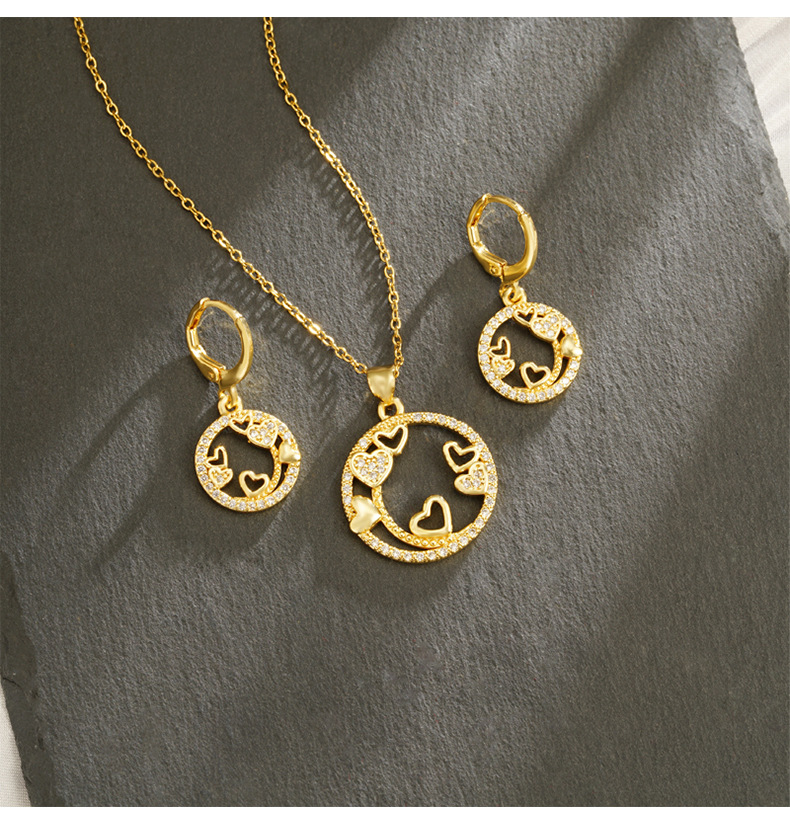 Transfronterizos collar de oro de arena de lujo ligero anillo de corazón hueco línea pendientes de nicho de diseño de joyería al por mayor