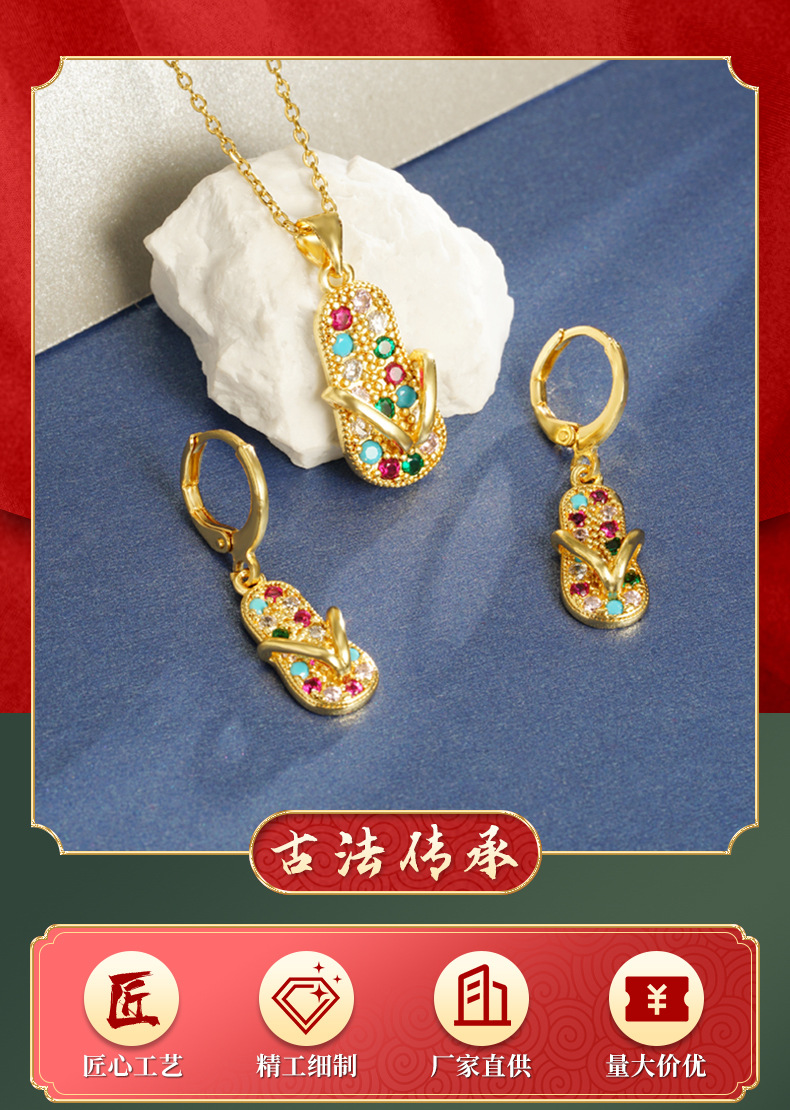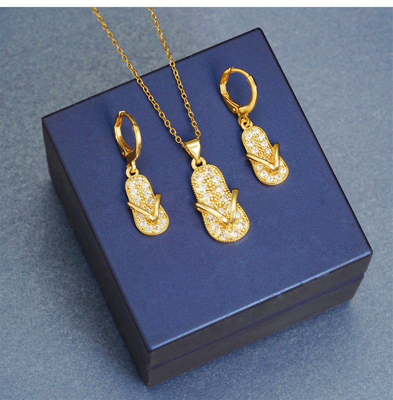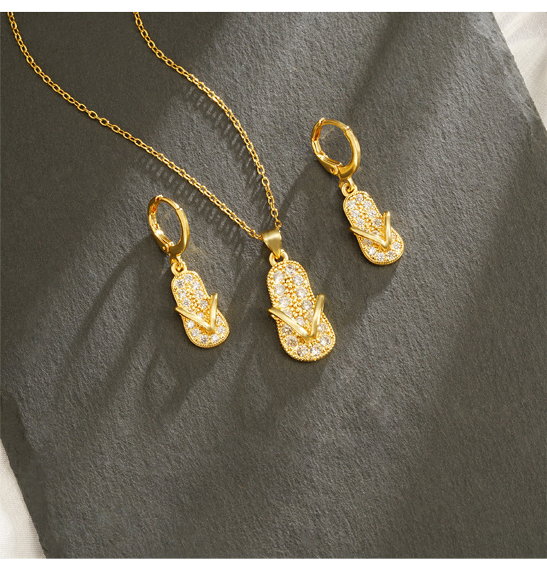 Nuevo diseño de collar de oro de arena vietnamita sensación de diamantes zapatillas pendientes mujeres nicho no se desvanecen joyas al por mayor