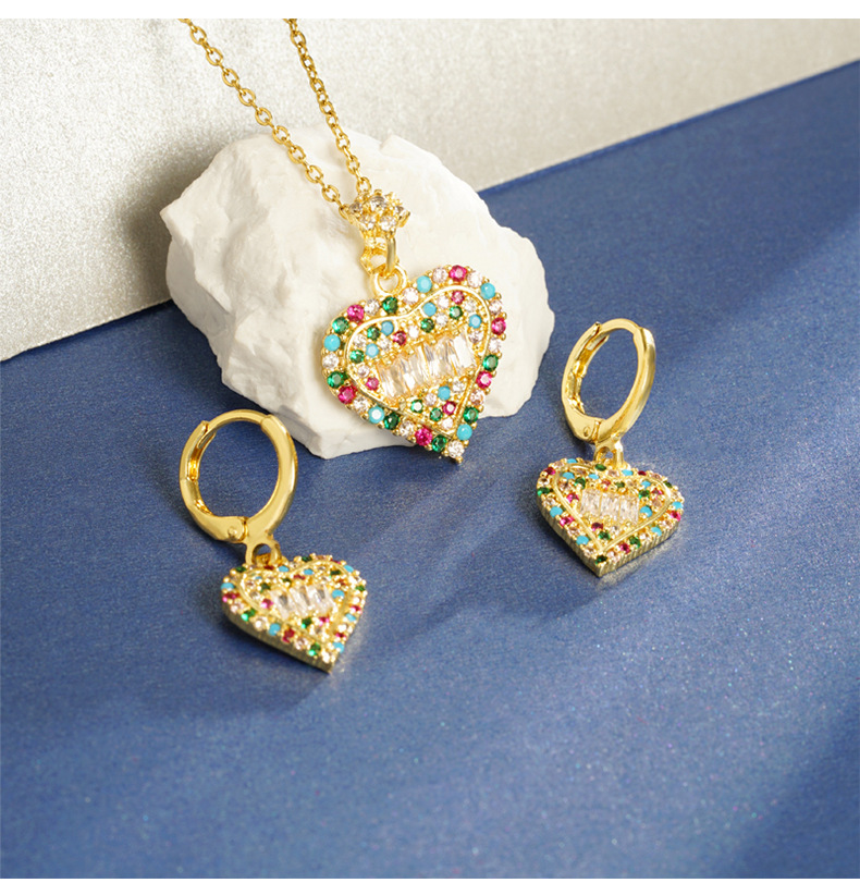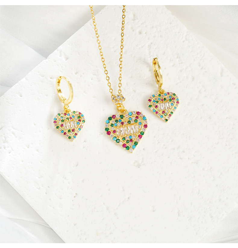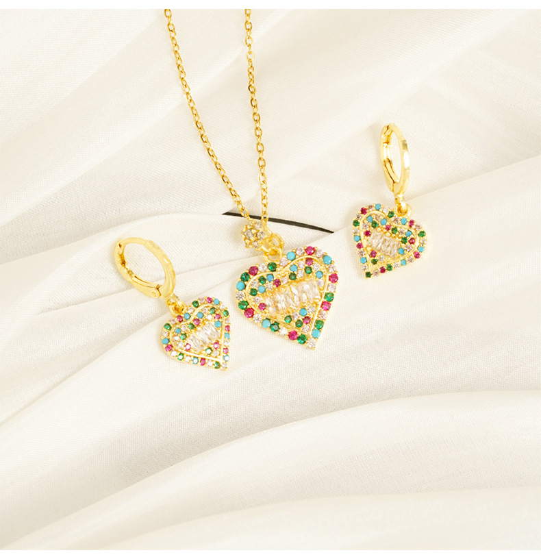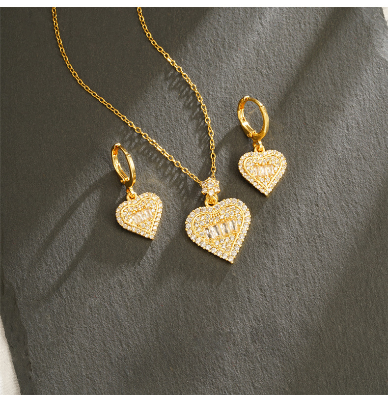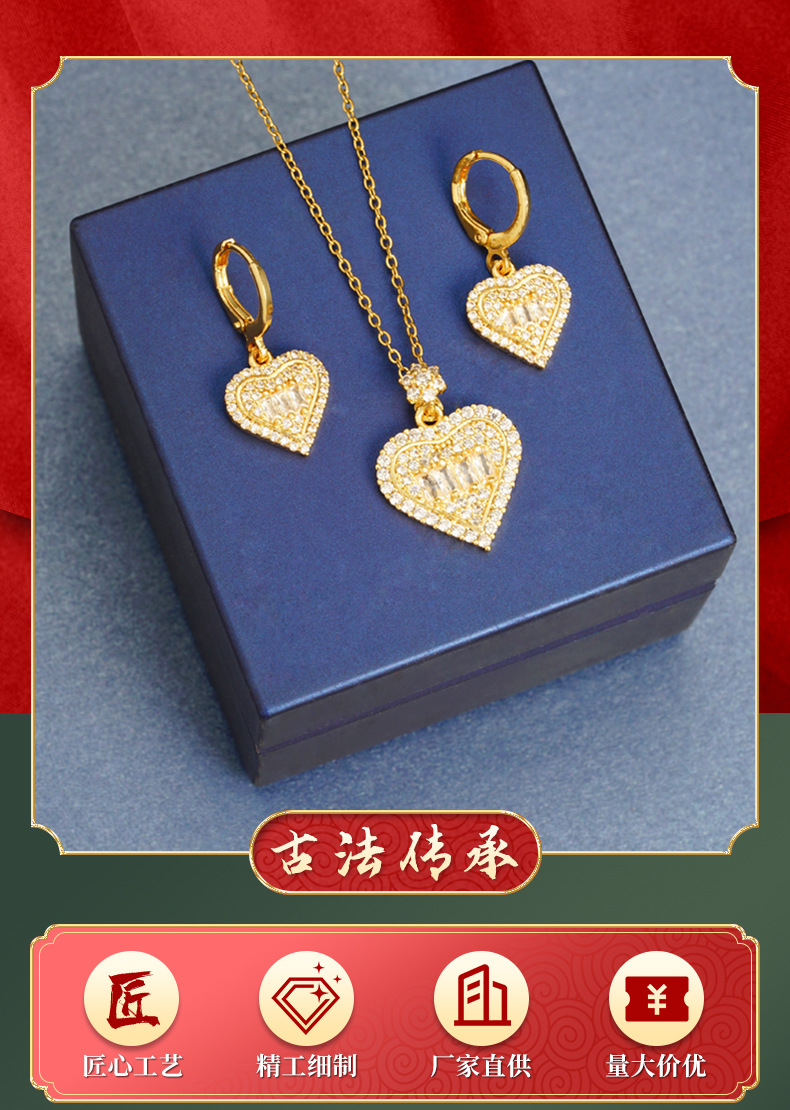 Transfronterizos collar de oro de arena de lujo ligero aretes de diamantes en forma de corazón para mujeres de alta calidad no se desvanecen joyas al por mayor
