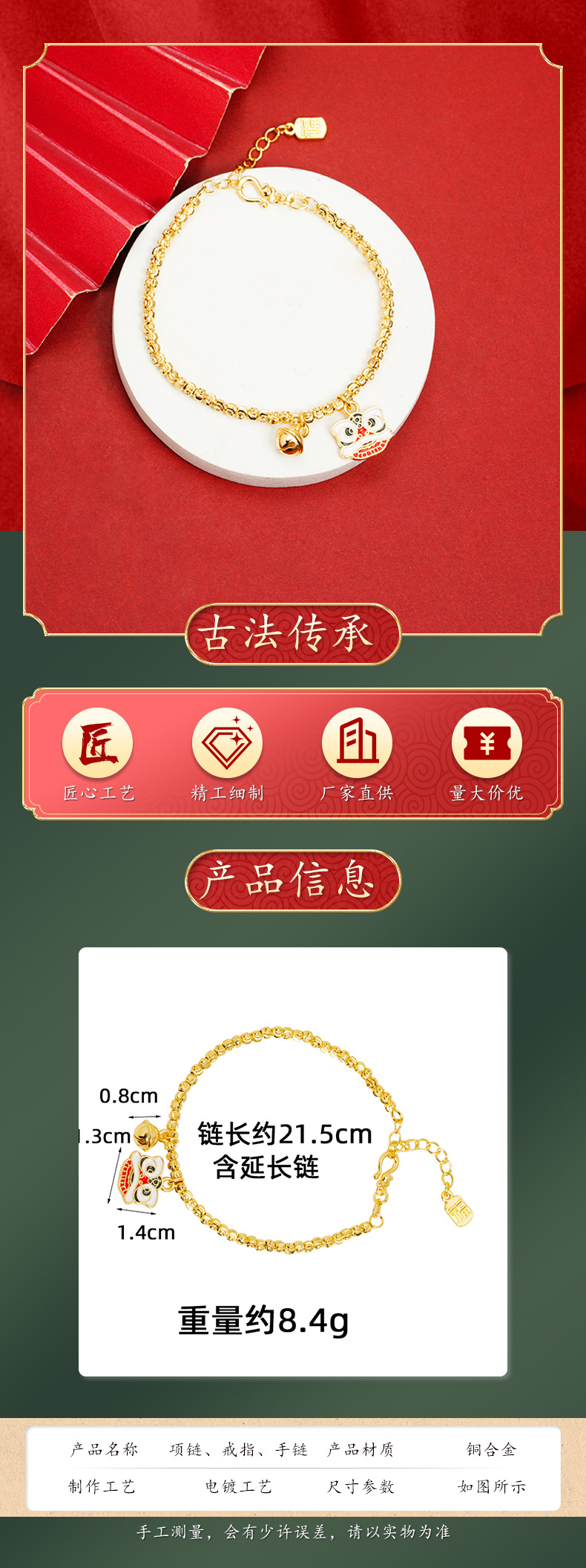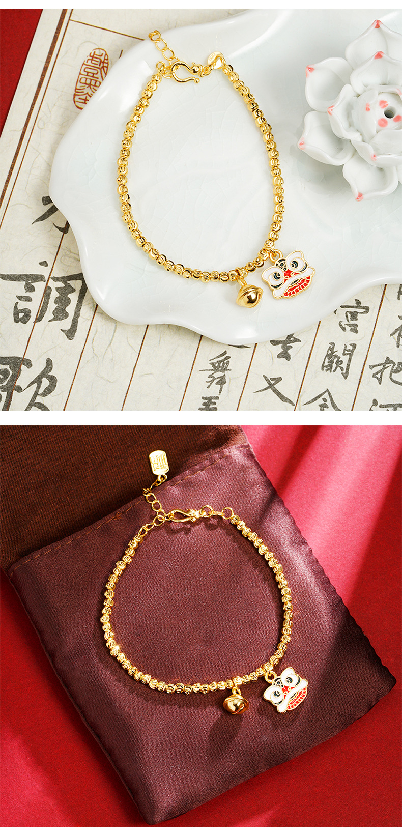 Nueva pulsera de oro de arena vietnamita de la marea nacional goteo de aceite despierta león campanas joyas de mano con cuentas para mujeres lujosas joyas de mano no se desvanecen