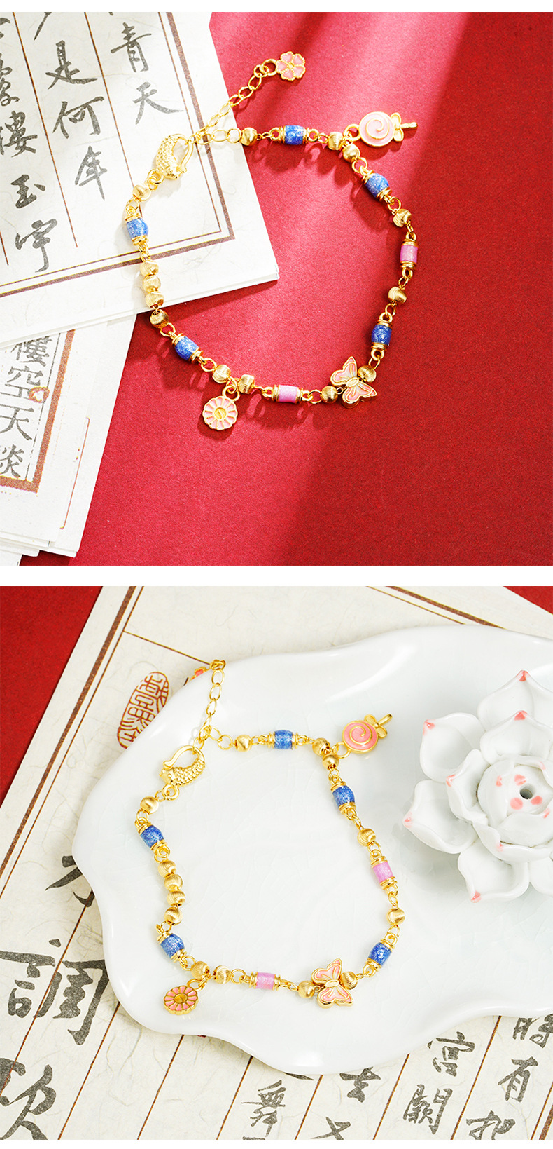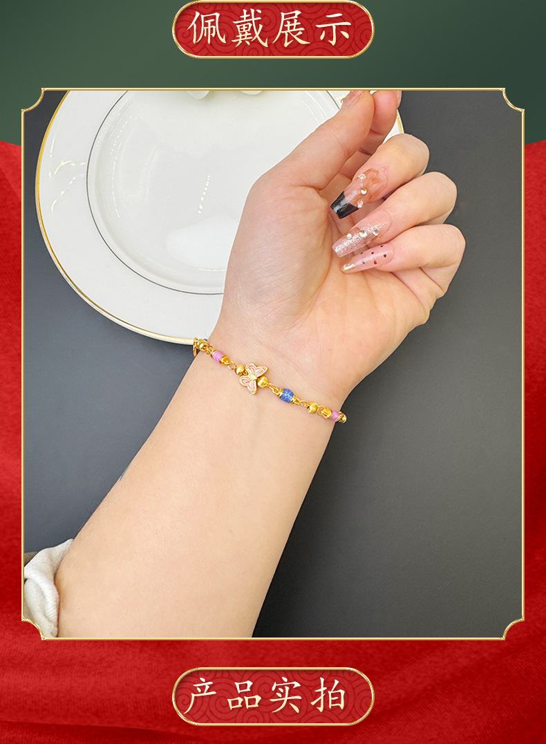 Brazalete de oro de arena vietnamita goteo de aceite mariposa pirola de pirola de goma de frisa brazalete de mujer diseño de joyas no se desvanecen durante mucho tiempo