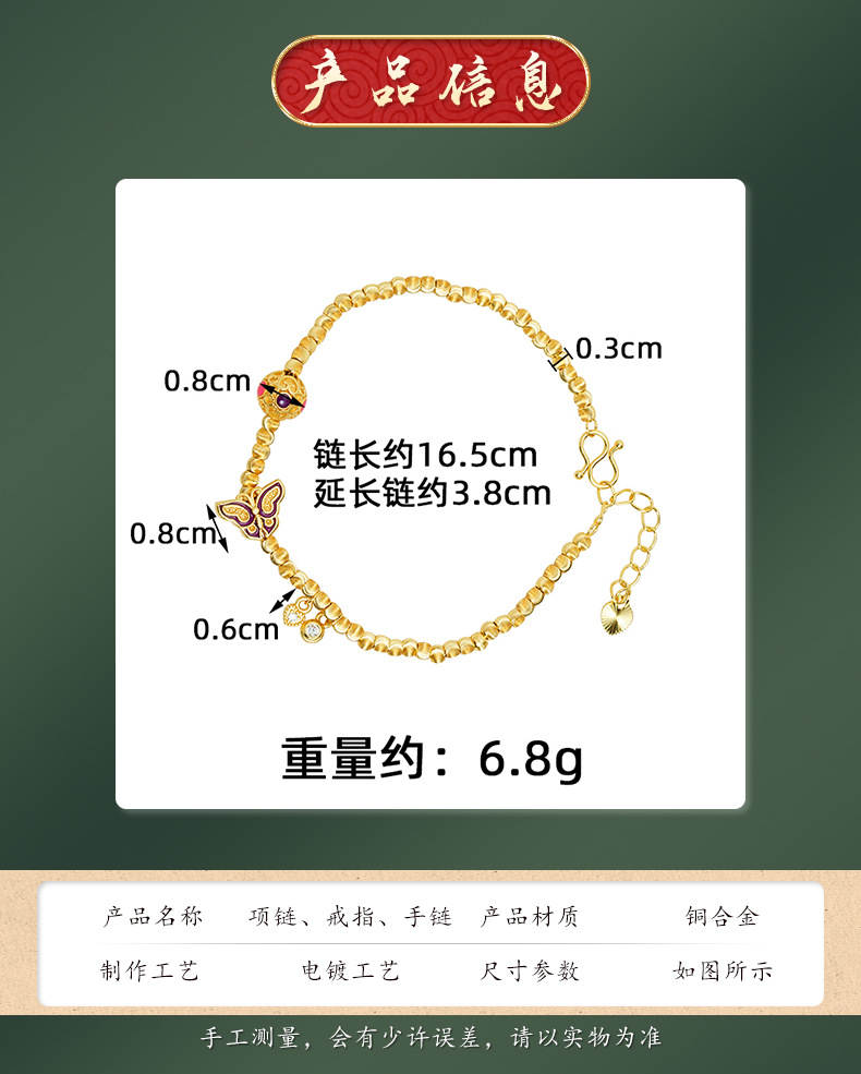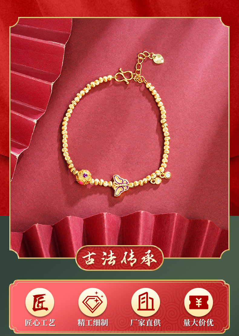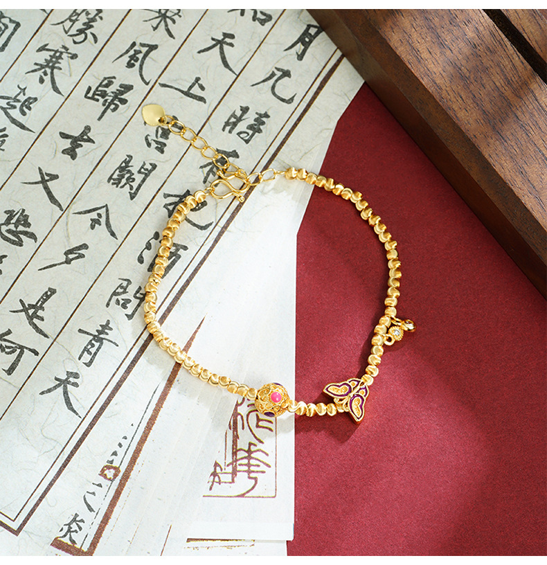 Nuevo estilo chino de oro de arena vietnamita de moda nacional mariposa silla pulsera de bola de seda nicho de diseño de joyería al por mayor