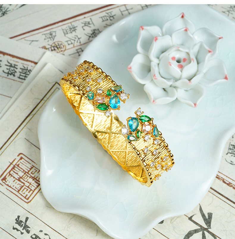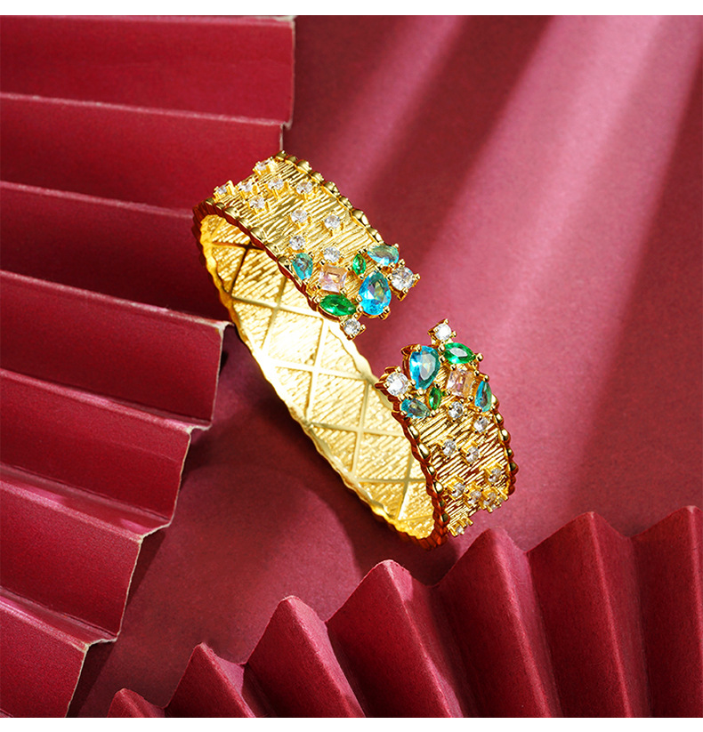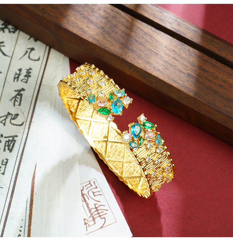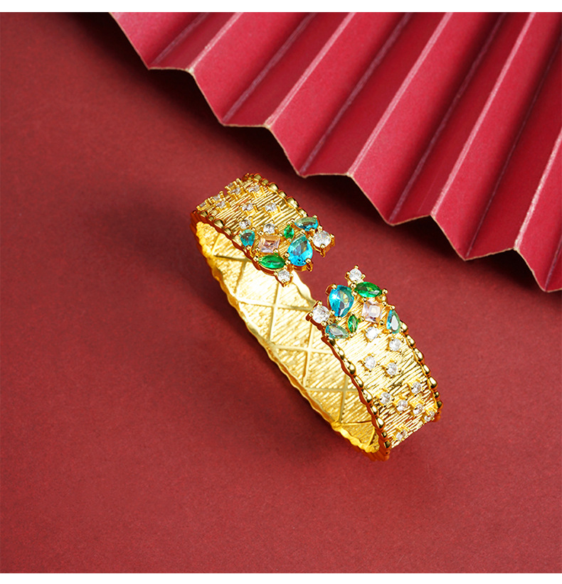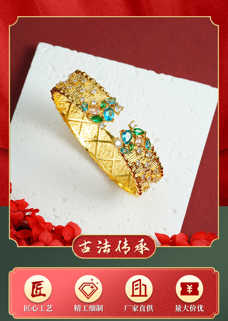 Retro vietnamita arena dorada pulsera de diamantes brillantes estrellas abertura pulsera de corte no se desvanece joyería al por mayor
