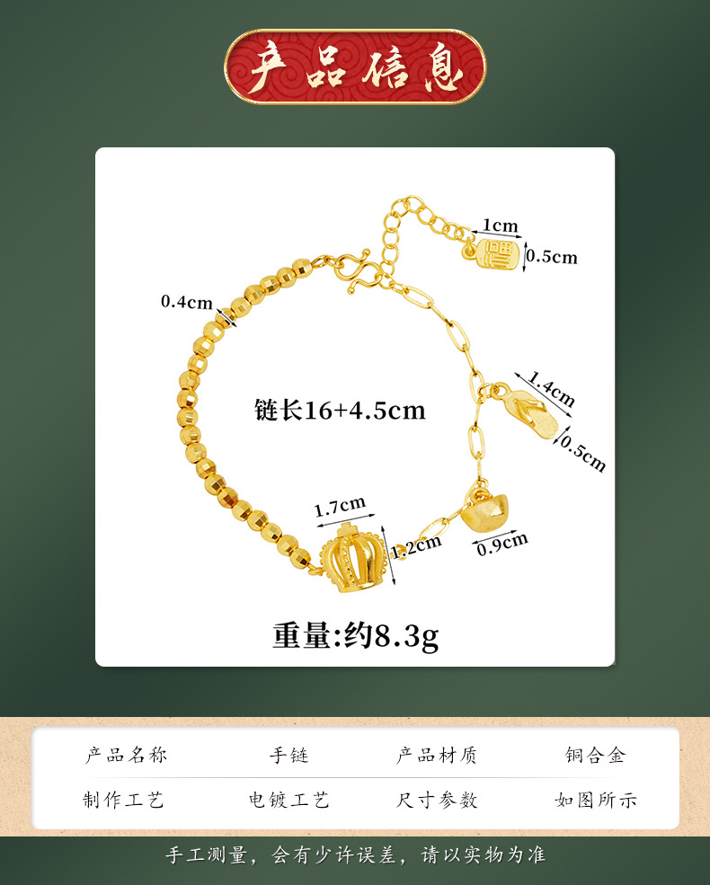 Nuevos productos Gufasha pulsera de oro Fu marca corona yuan Bao multifuncional pulsera de alta calidad no se desvanece el suministro de joyas