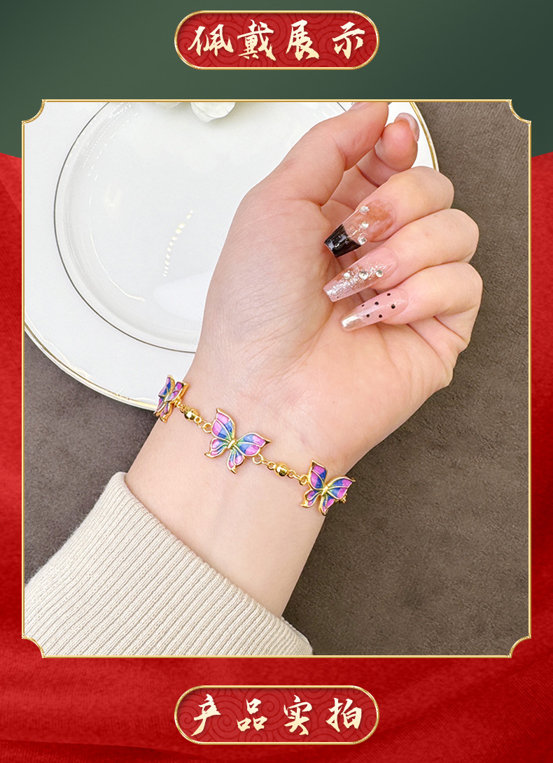 Brazalete de oro de esmalte de color esmalte de goteo de aceite mariposa de lujo ligero para mujeres joyas duraderas de alta calidad