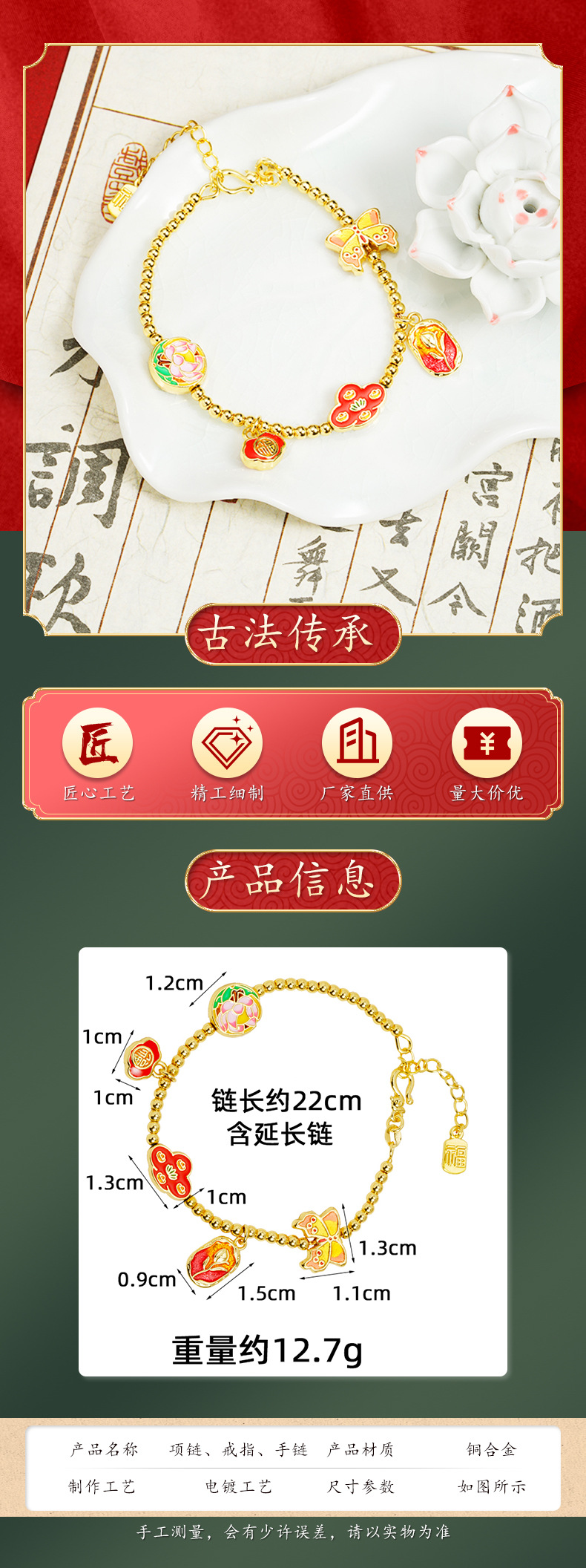 Nuevo chino vietnamita arena oro pulsera corte goteo de aceite loto pulsera multi-elemento de la tendencia nacional no se desvanece joyas de mano