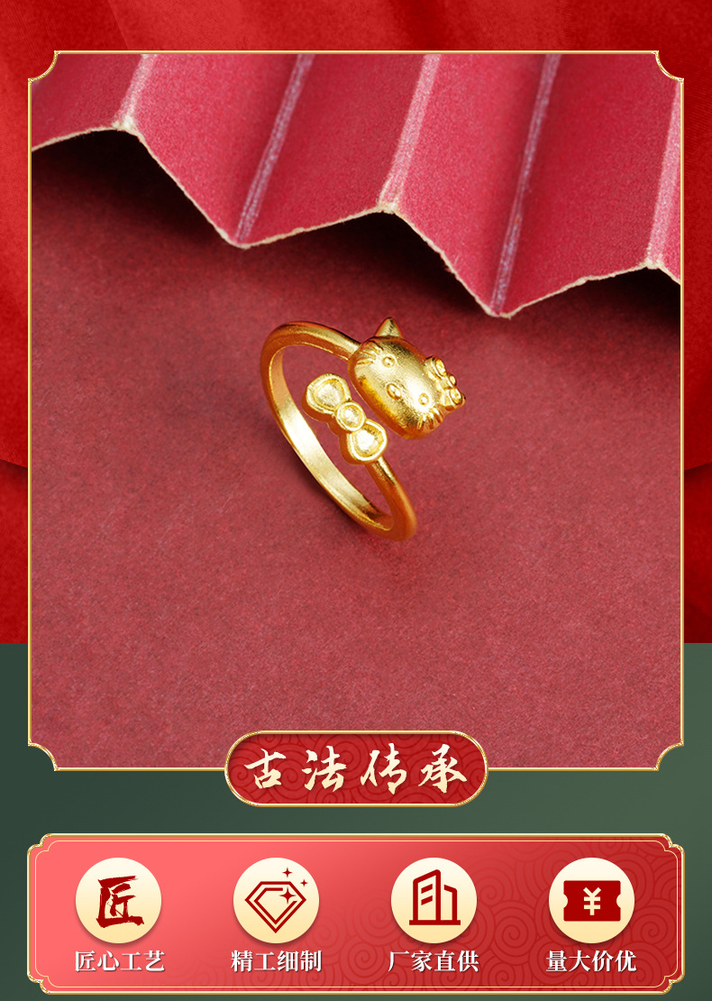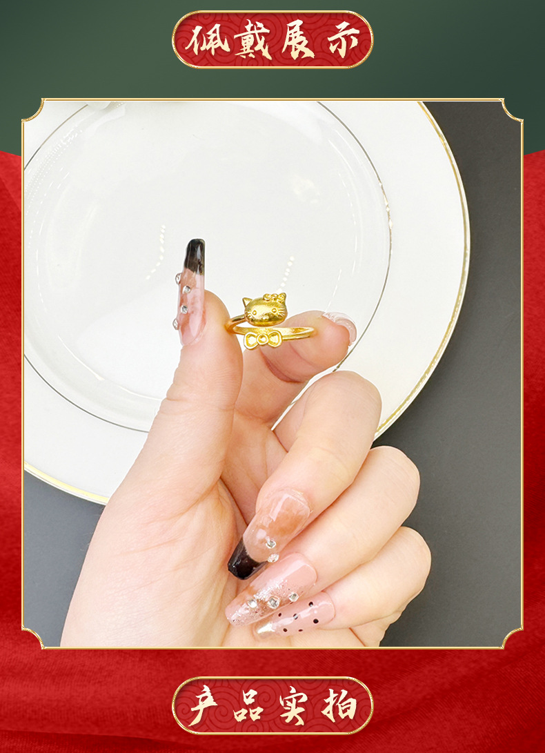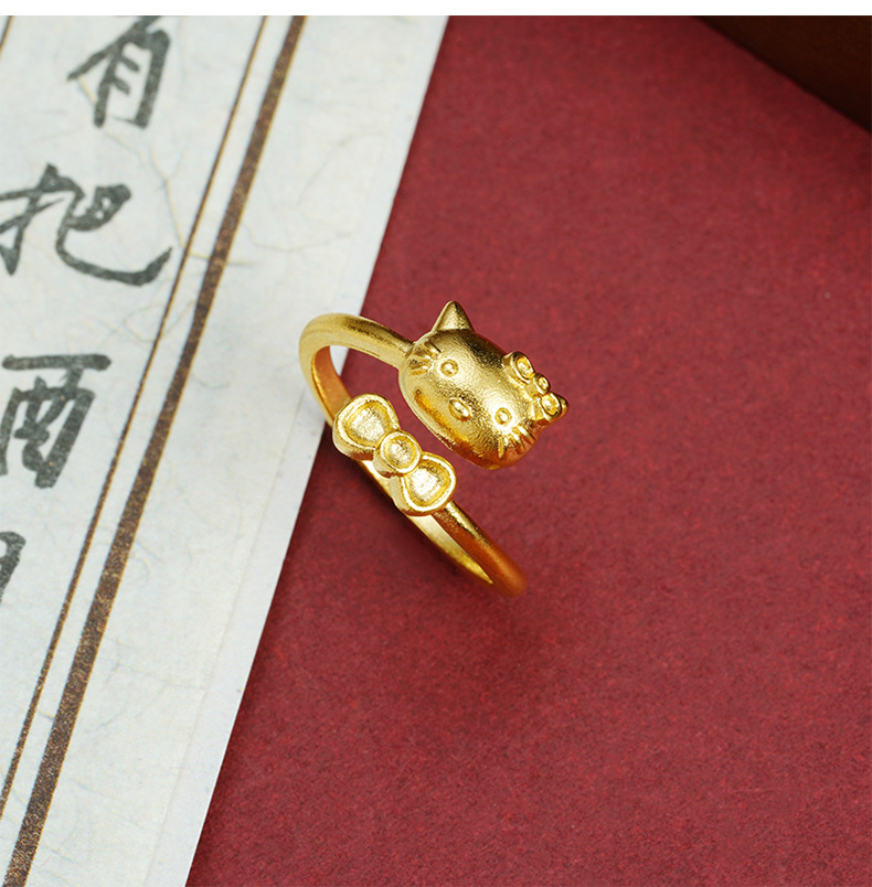 Nuevo anillo de oro de arena vietnamita lujoso ligero estilo HelloKitty pequeño gatito arco anillo joyas de alta calidad para mujeres