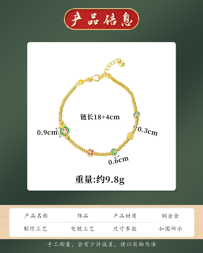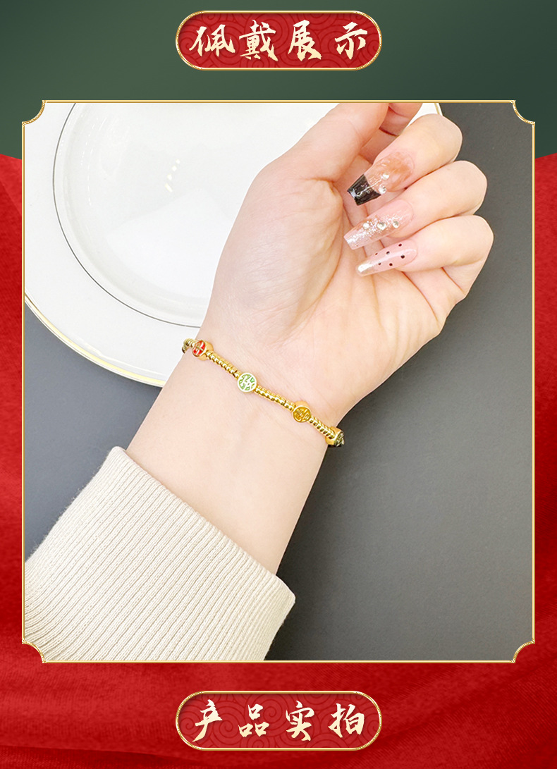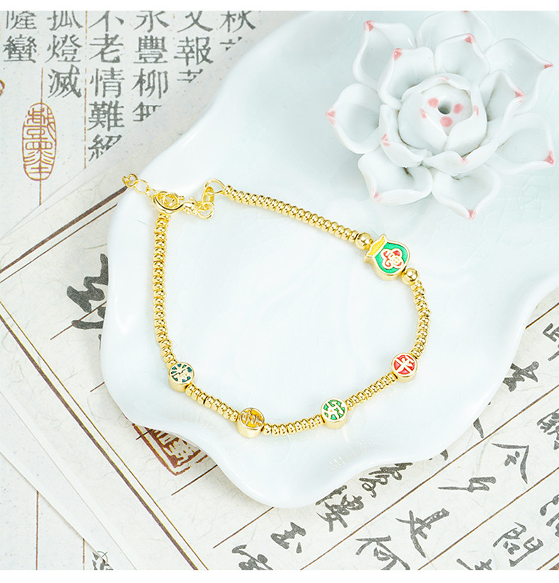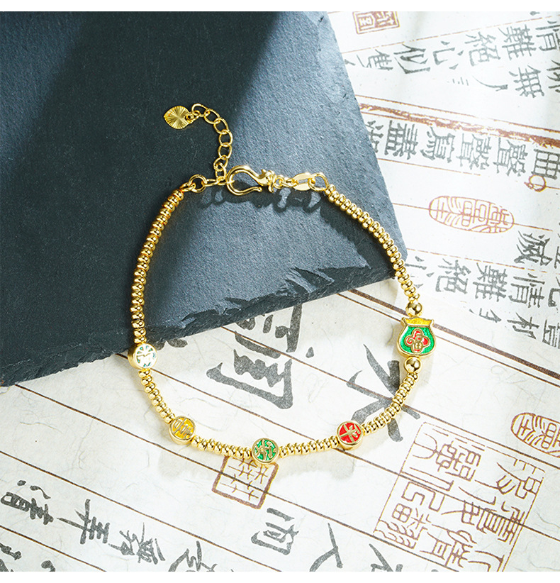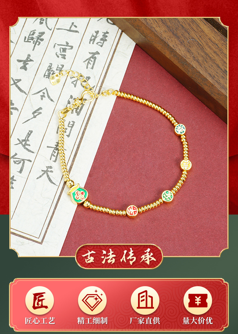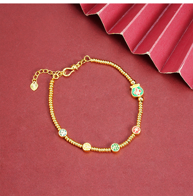 Brazalete de oro de arena vietnamita esmalte de color esmalte bolsas de bendición Ping An alegría brazalete de bronce dorado joyas de alta calidad