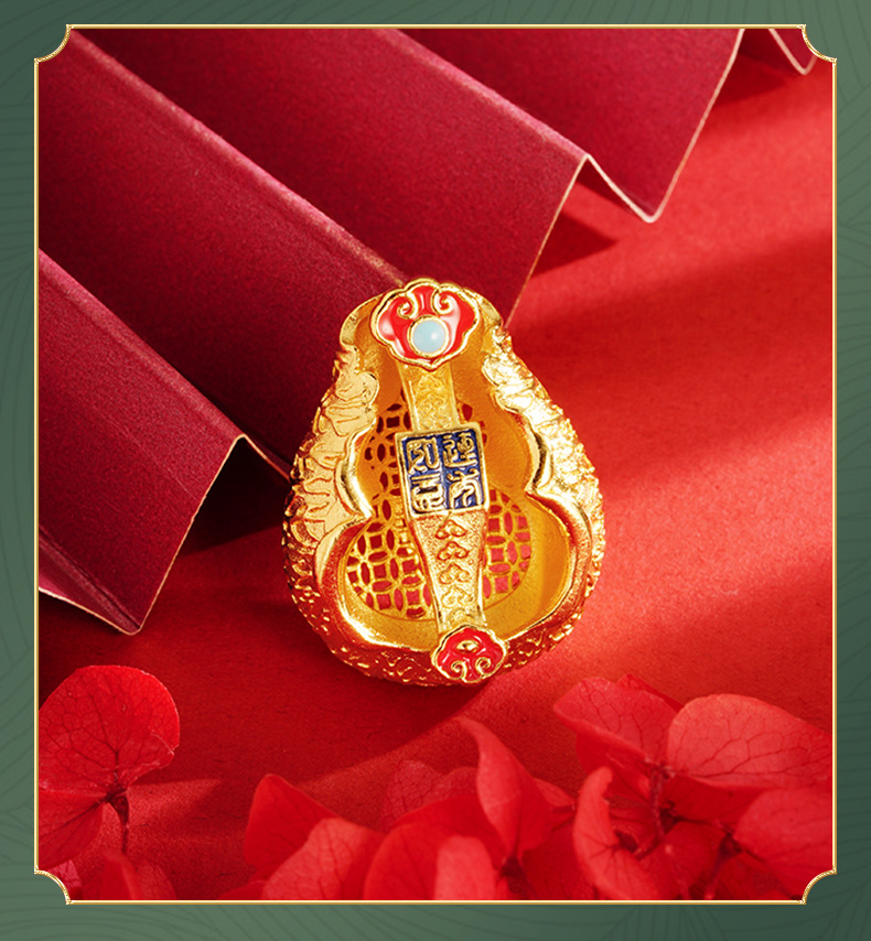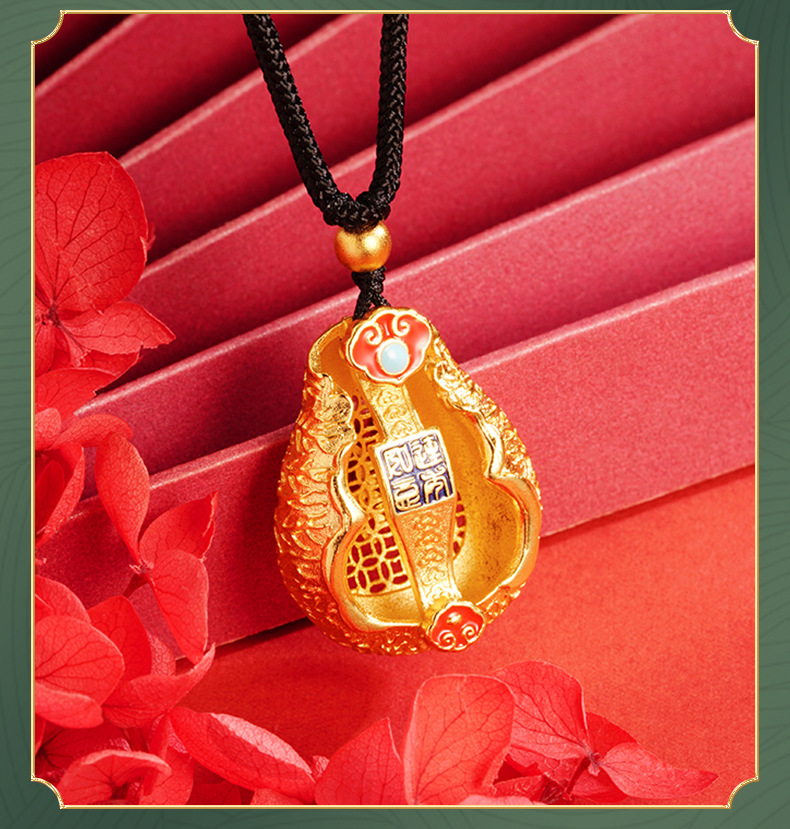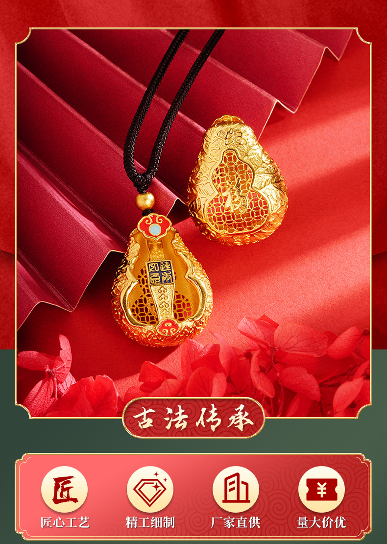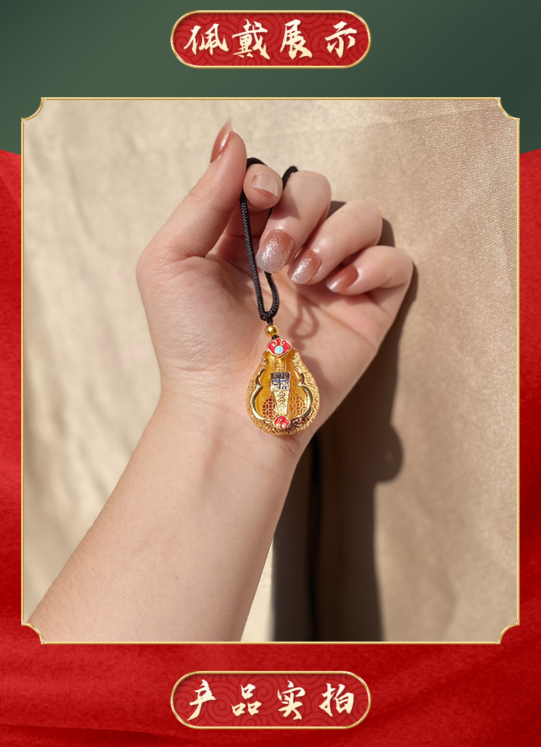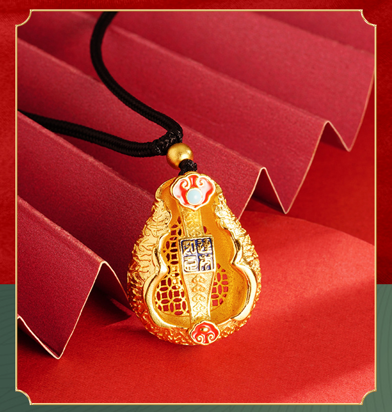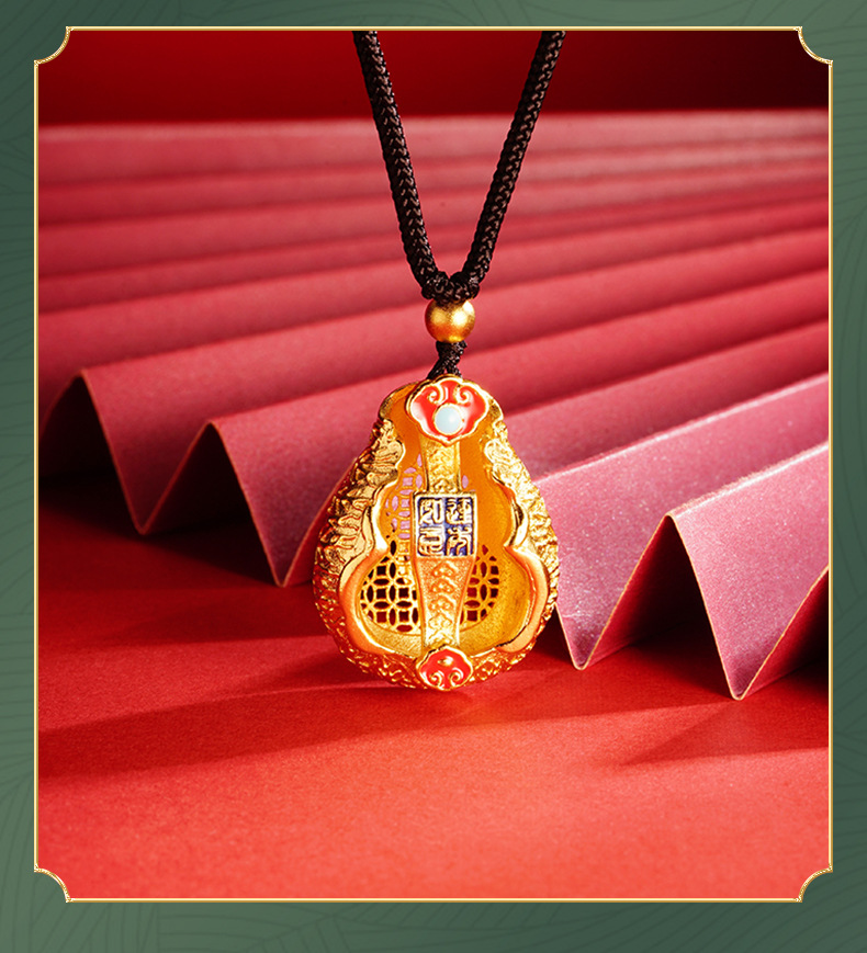 Antiguo oro color gota aceite esmalte auspicioso COLLAR COLGANTE de Calabaza Fu Lu joyería aleación de cobre Yiwu joyería al por mayor