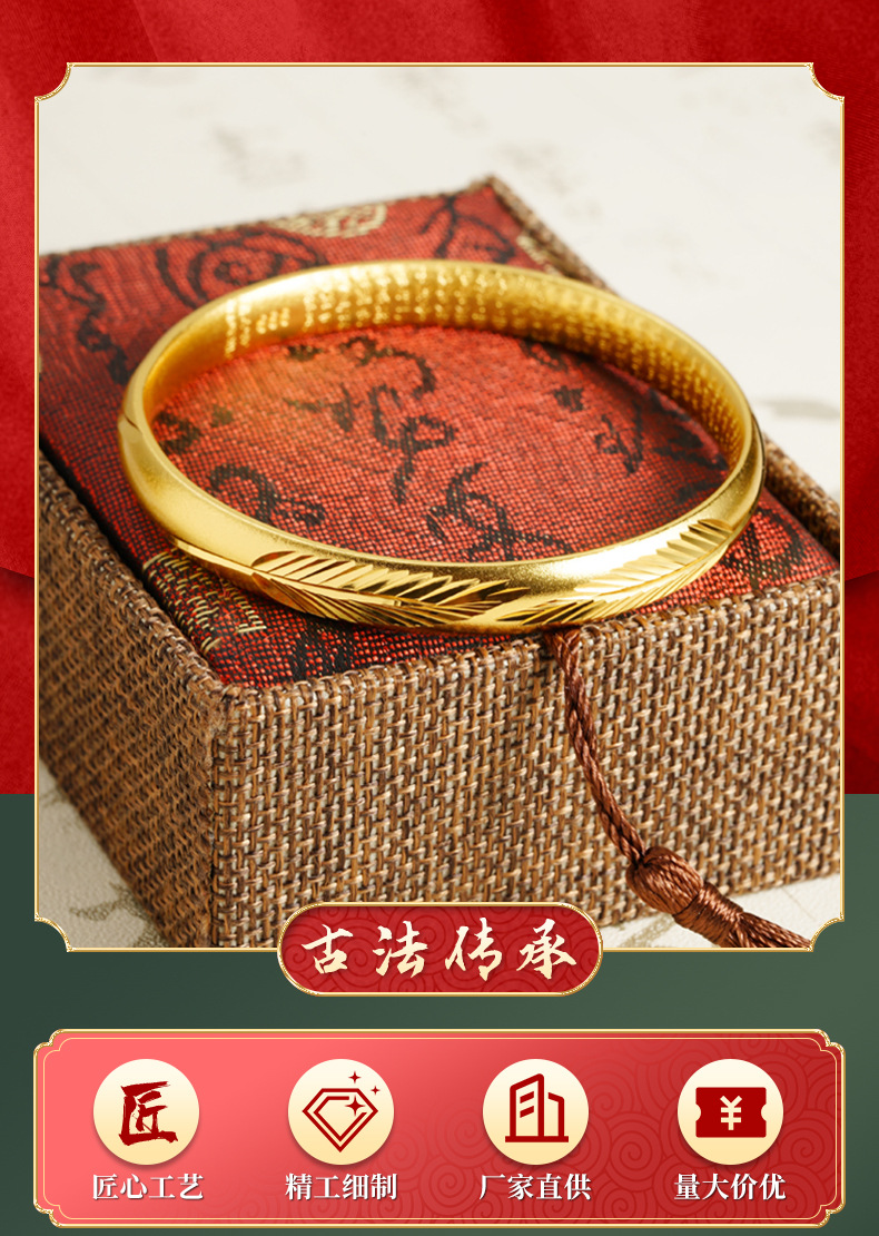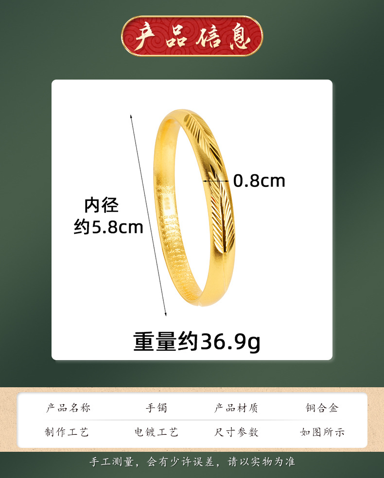 Vietnam Sha Jin Gufa Heart Meridian Hoja Mujer Brazalete Cerrado no se desvanece el estilo nacional esmerilado alta sensación de joyería suministro