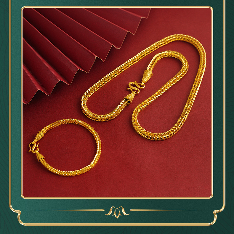 Nueva cadena de la suerte de los hombres de aleación de cobre collar de cadena de Chopin pulsera elegante e ingenioso retro imitación joyería de oro cadena larga