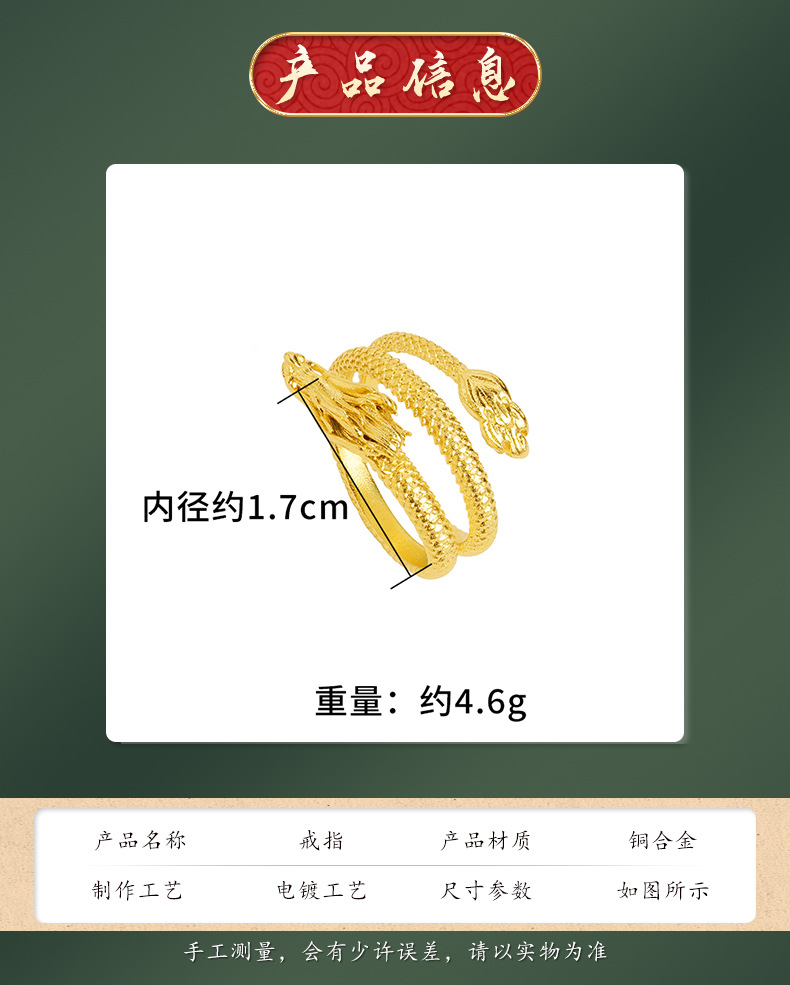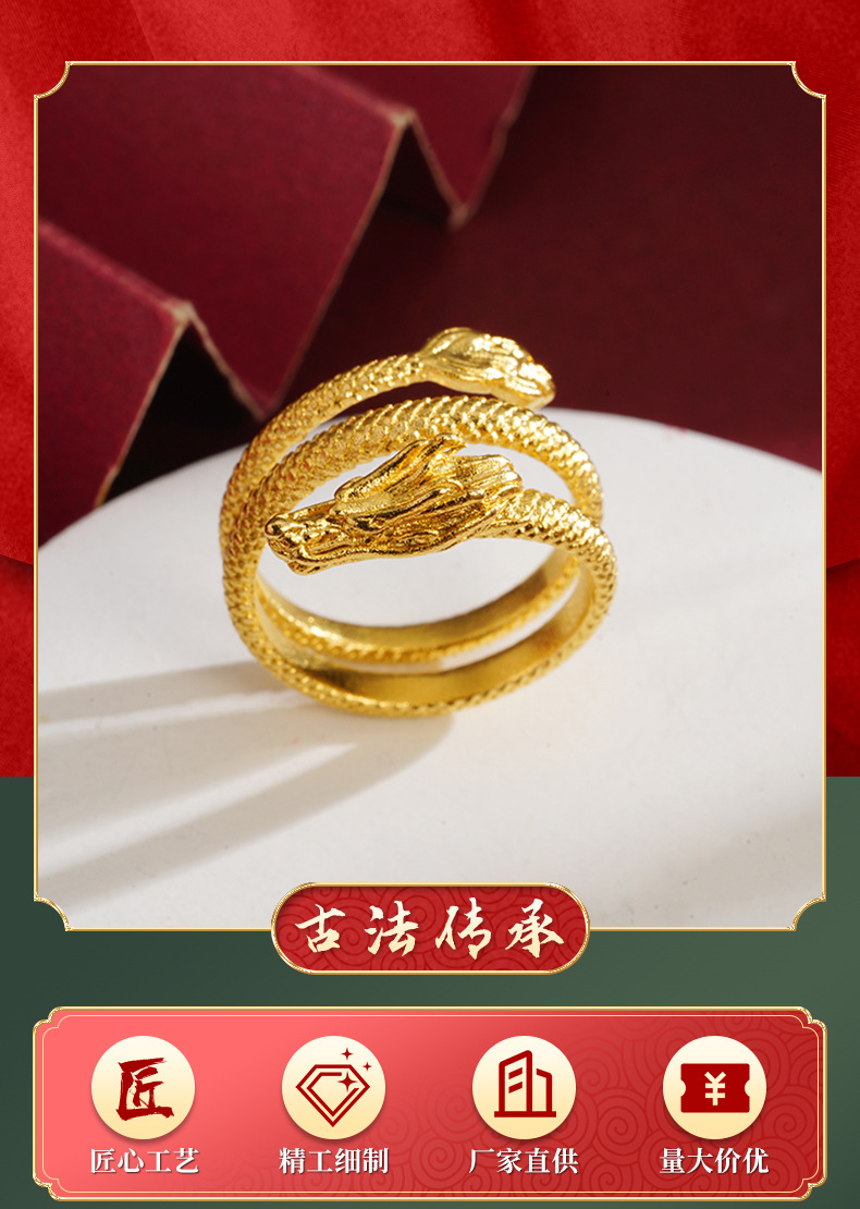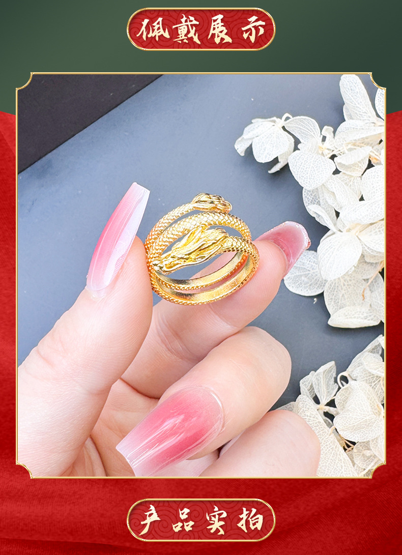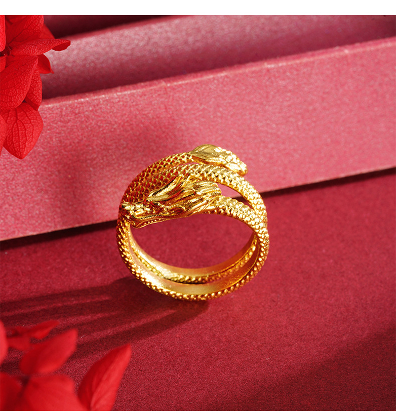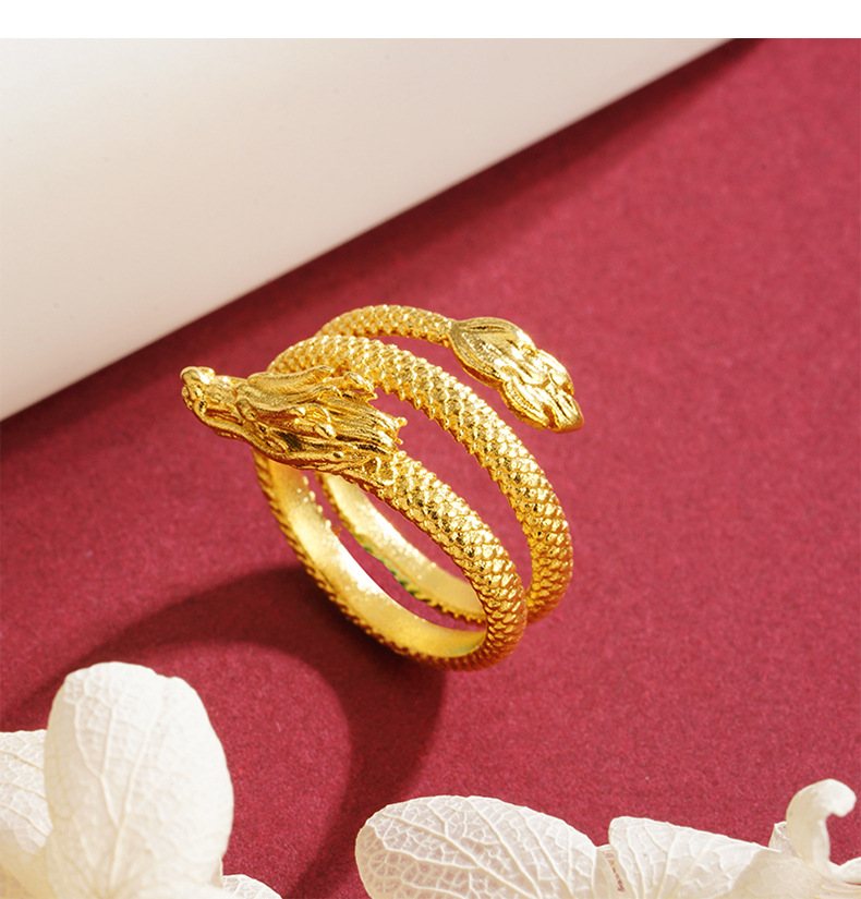 Panlong anillo abierto Zodiaco Vietnam arena oro antiguo estilo chino de los hombres y las mujeres del Dragón de la joyería del todo-Partido transmisión en vivo Venta caliente