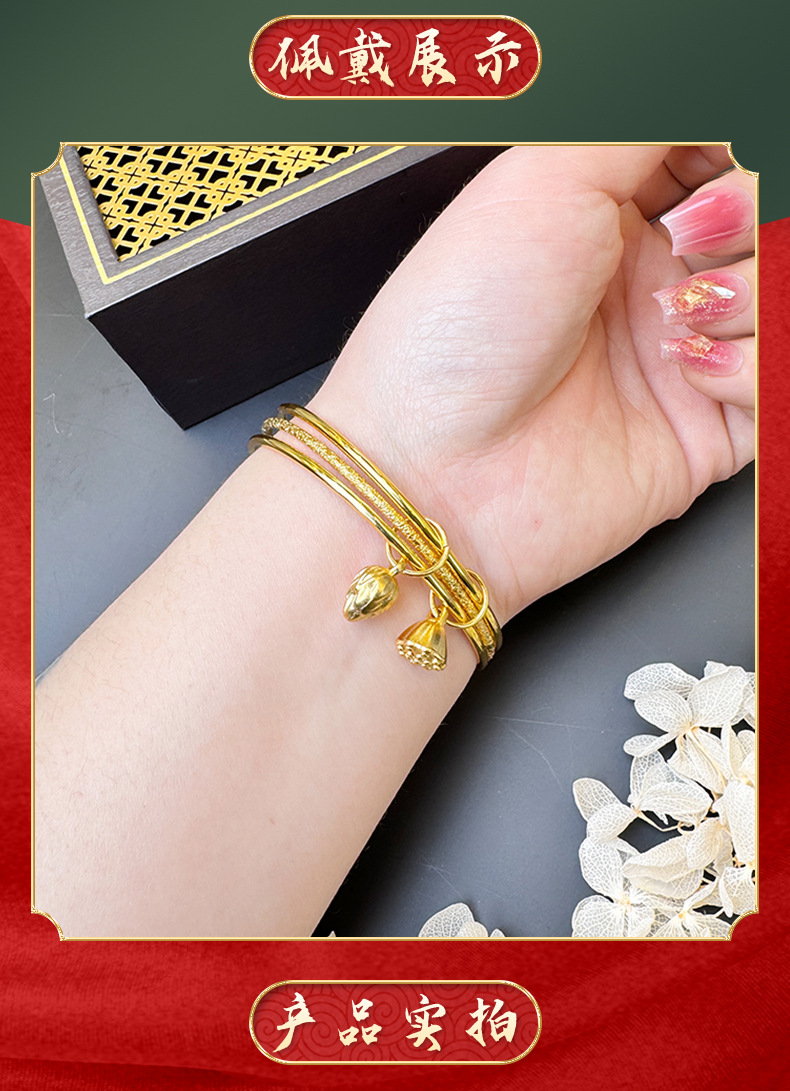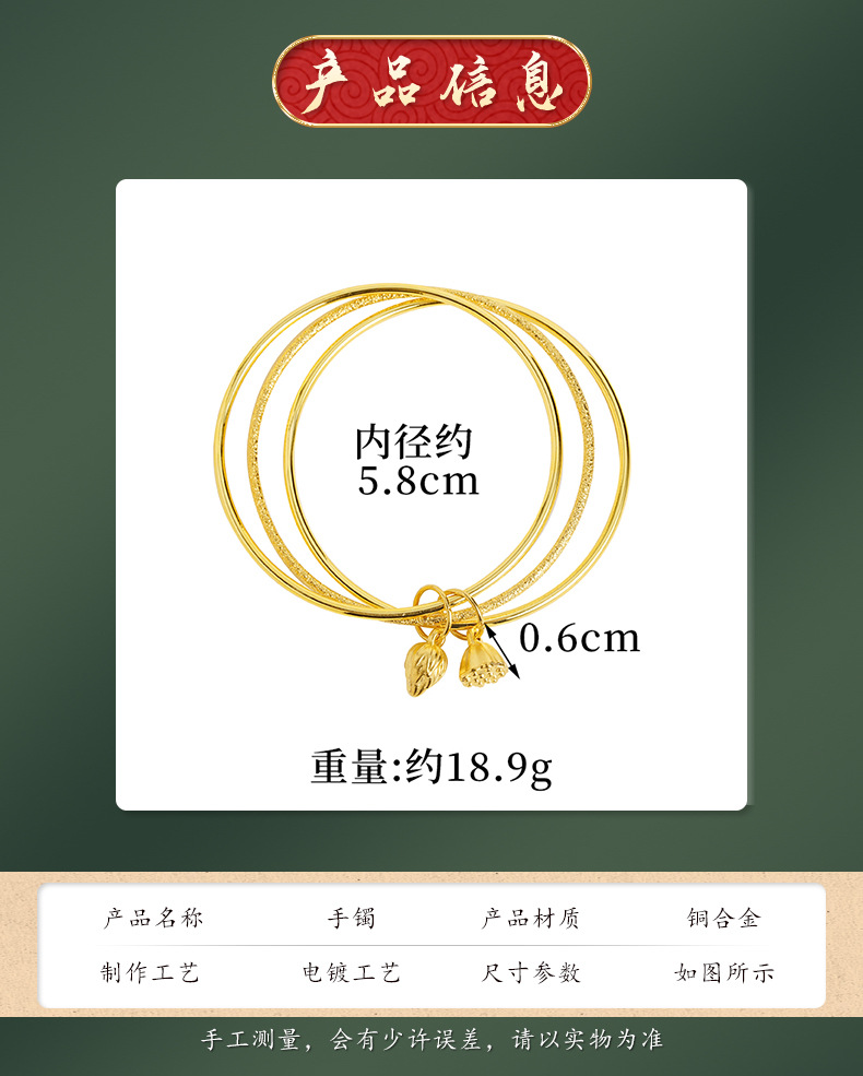 Vietnam Shajin anillo brazalete de loto marea nacional estilo antiguo anillo de tres anillos liso esmerilado joyería Yiwu suministro directo de fábrica de celebridades de Internet