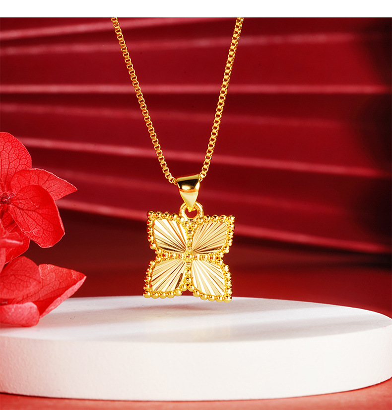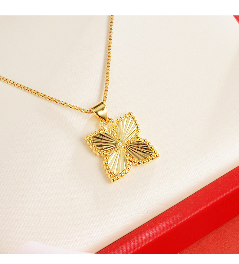 Oro trébol de cuatro hojas colgante antiguo chapado en oro de la flor de las mujeres elegante todo partido transmisión en vivo caliente suministro al por mayor Yiwu