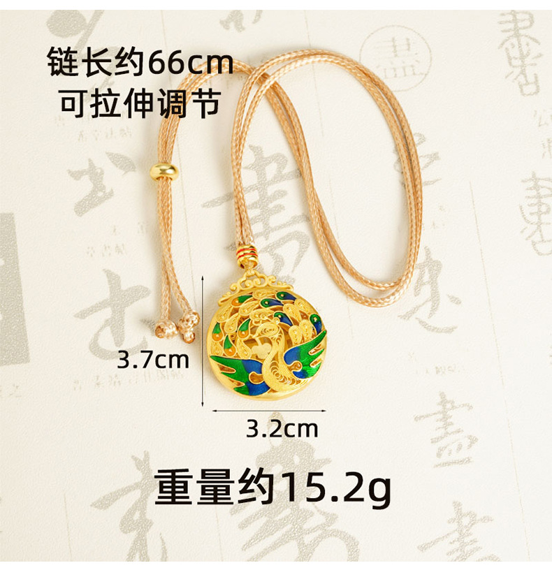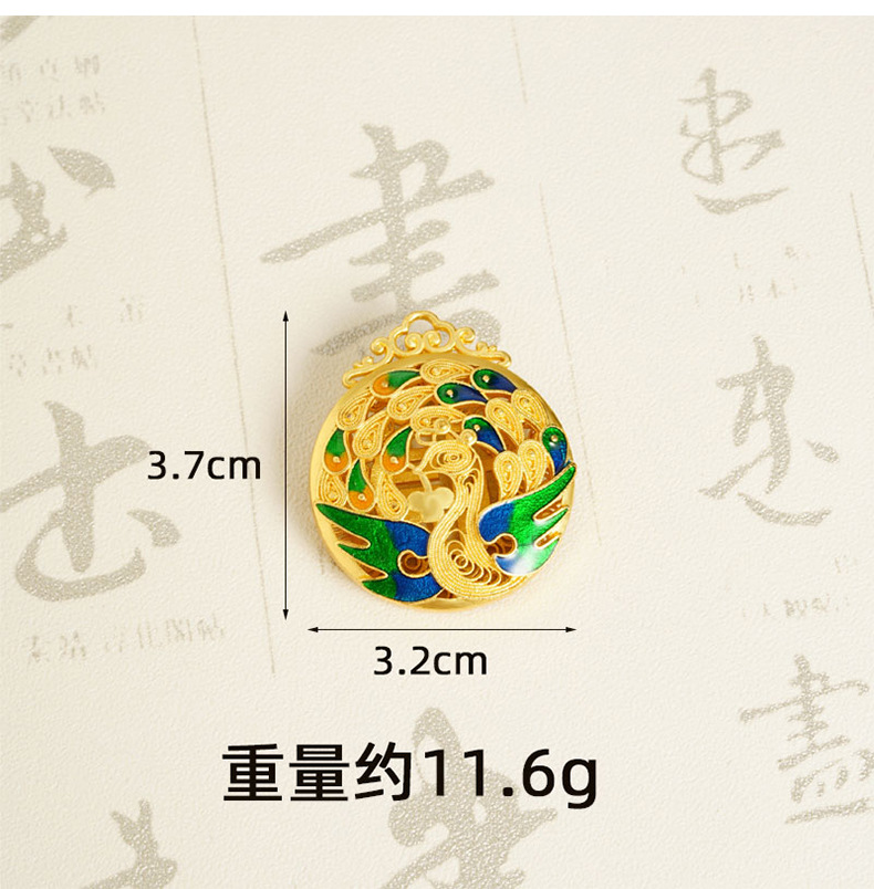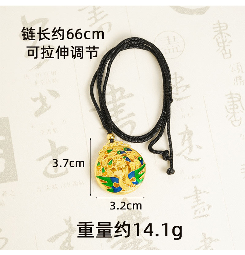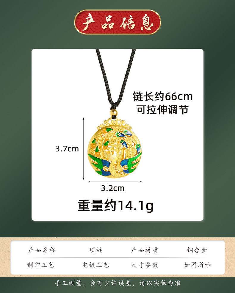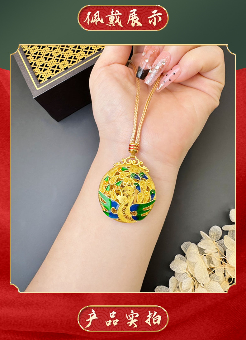 Vietnam oro retro ardiente azul goteo de aceite collar pavón peacock no se desvanecerá en forma de Fu hueco colgante de color redondo fuente