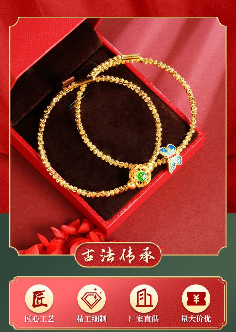 Nuevos productos de Vietnam Sha Jin pulsera de lujo ligera Ping An feliz goteo de aceite pulsera mariposa de alta calidad joyería Yiwu