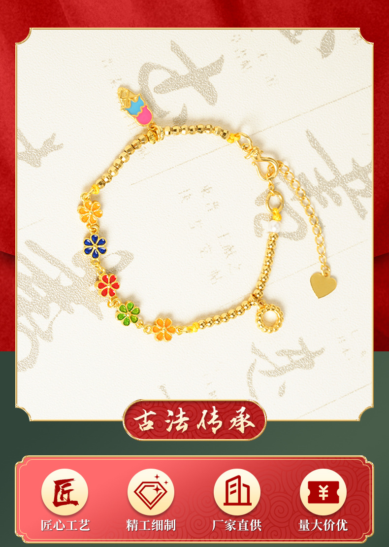 Vietnam oro de oro goteo de aceite de flores ligeras de lujo nicho pulsera de alto rendimiento no se desvanecerá fabricantes de joyas
