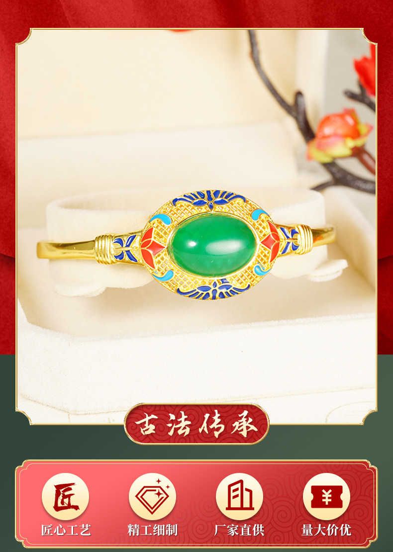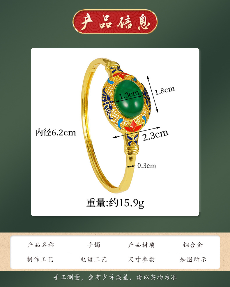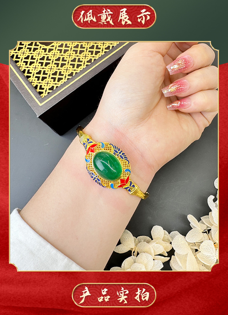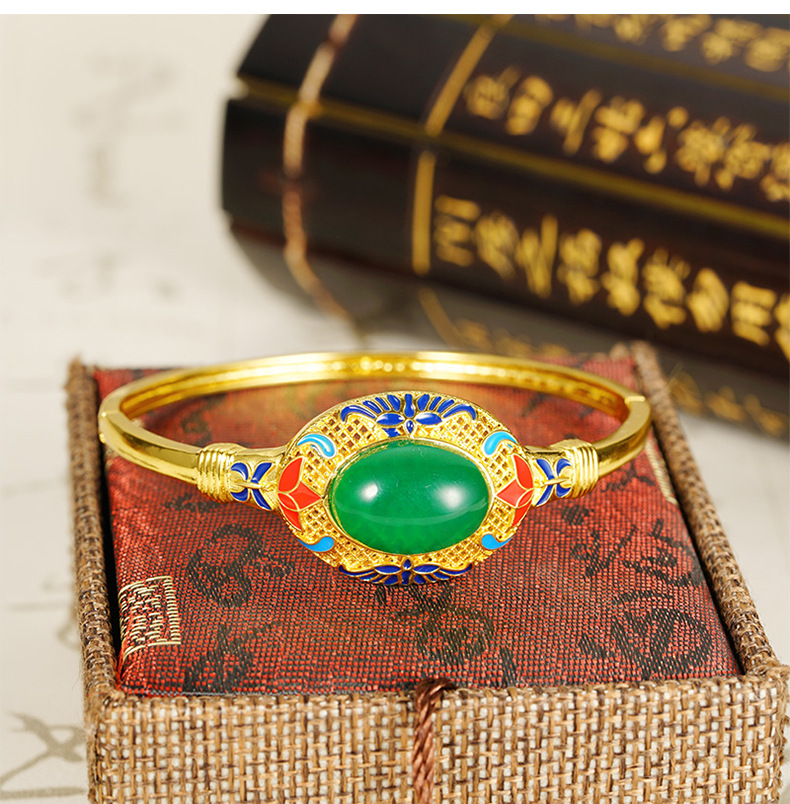 Esmalte de oro de arena vietnamita pintado pulsera de calabaza abierta retro estilo nacional aleación de cobre no se desvanece joyas al por mayor