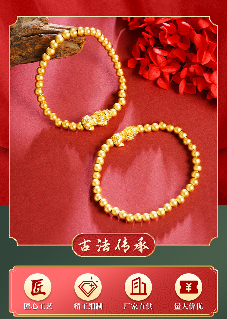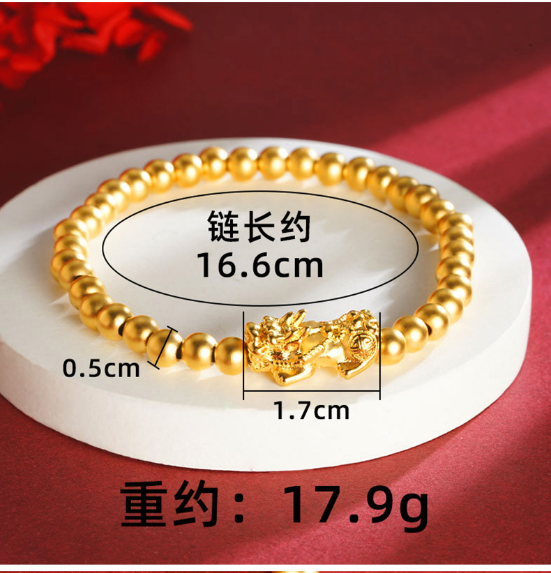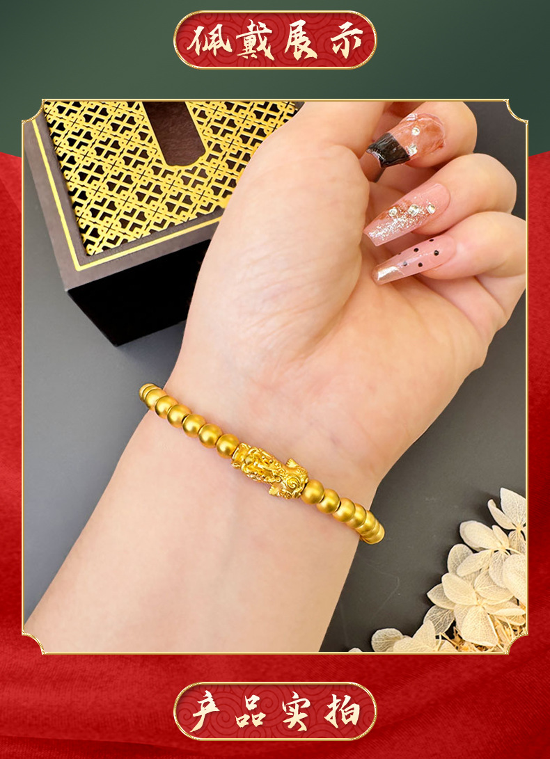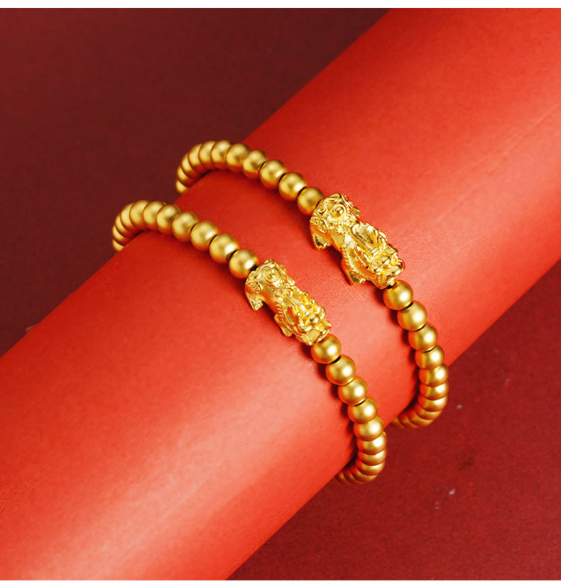 Fábrica directa de oro de arena de arroz de cuentas de pulsera de estilo chino herencia de la antigua ley de la marea nacional auspiciosa joyería de cobre chapado en oro al por mayor