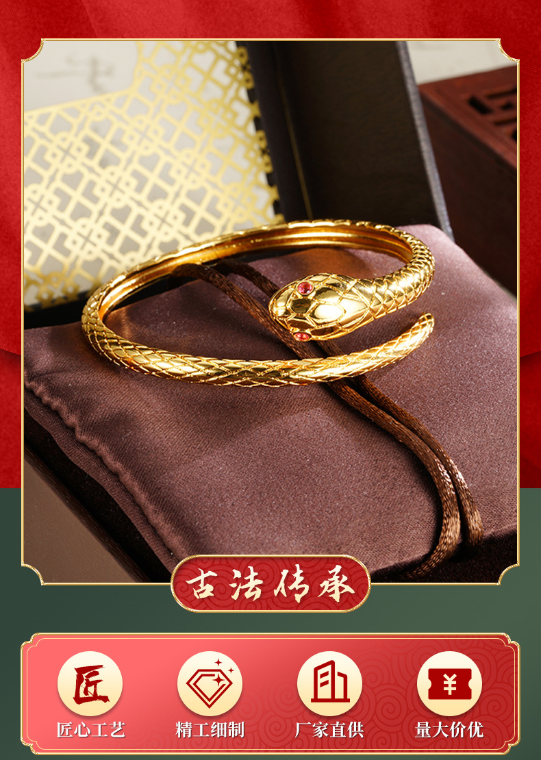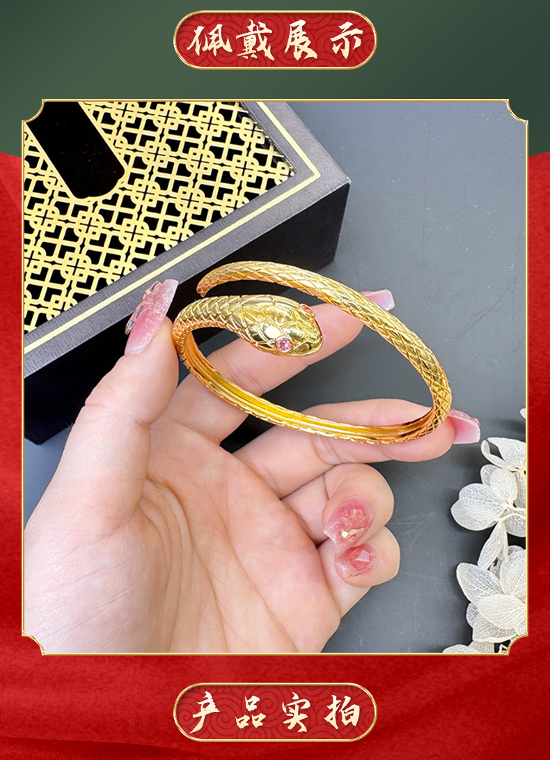 Zodiaco de oro serpiente brazalete abierta mujer Europa y América estereoscópica no se desvanecen durante mucho tiempo fabricantes de brazaletes de joyería suministro al por mayor transfronterizo