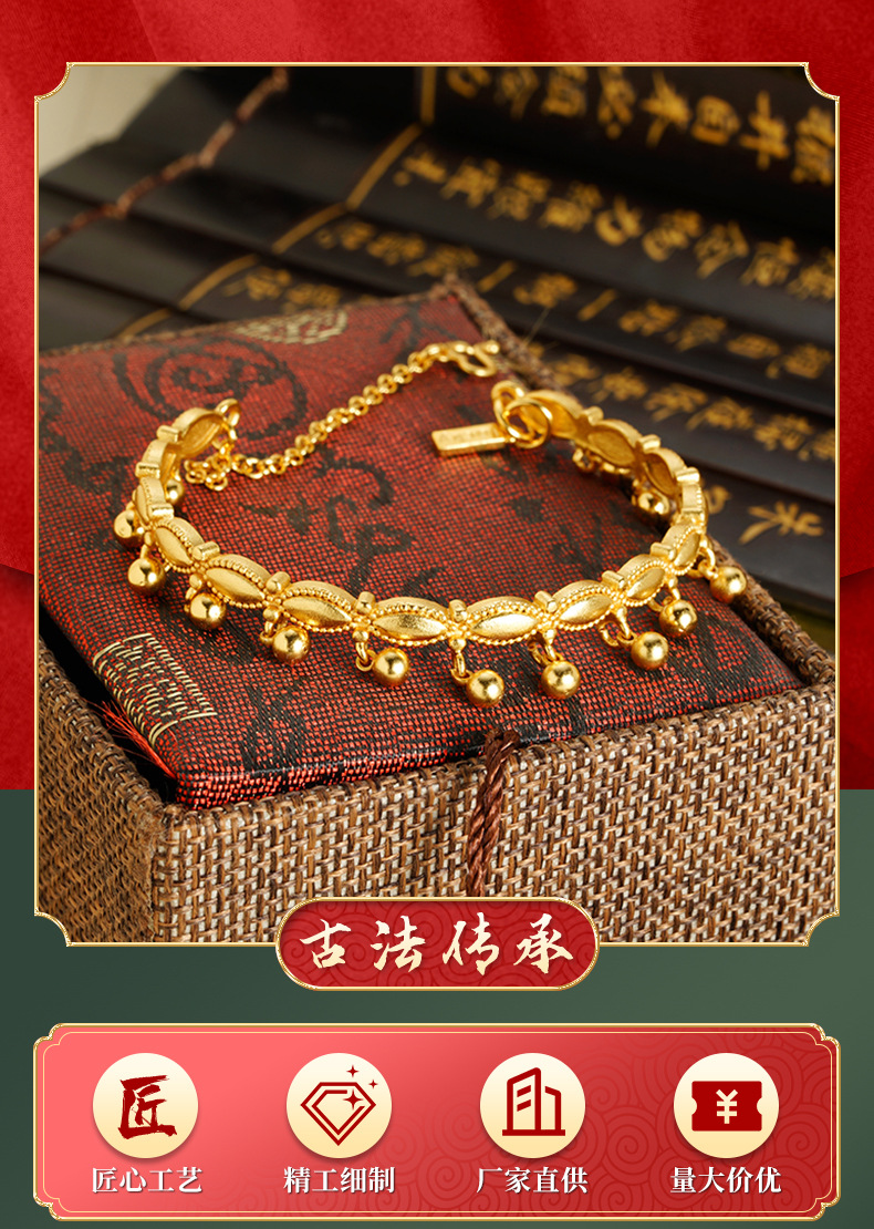 Vietnam oro oro aleación de cobre flores ricas campanas bordas pulsera de mujer fábrica de emisión directa explosión en vivo joyas preciosas
