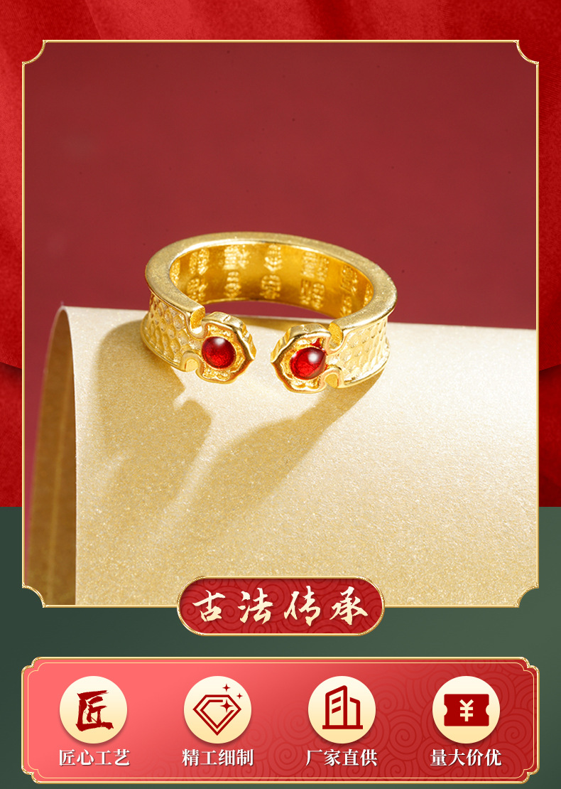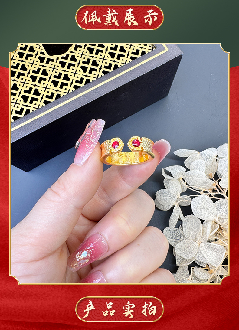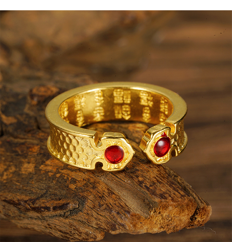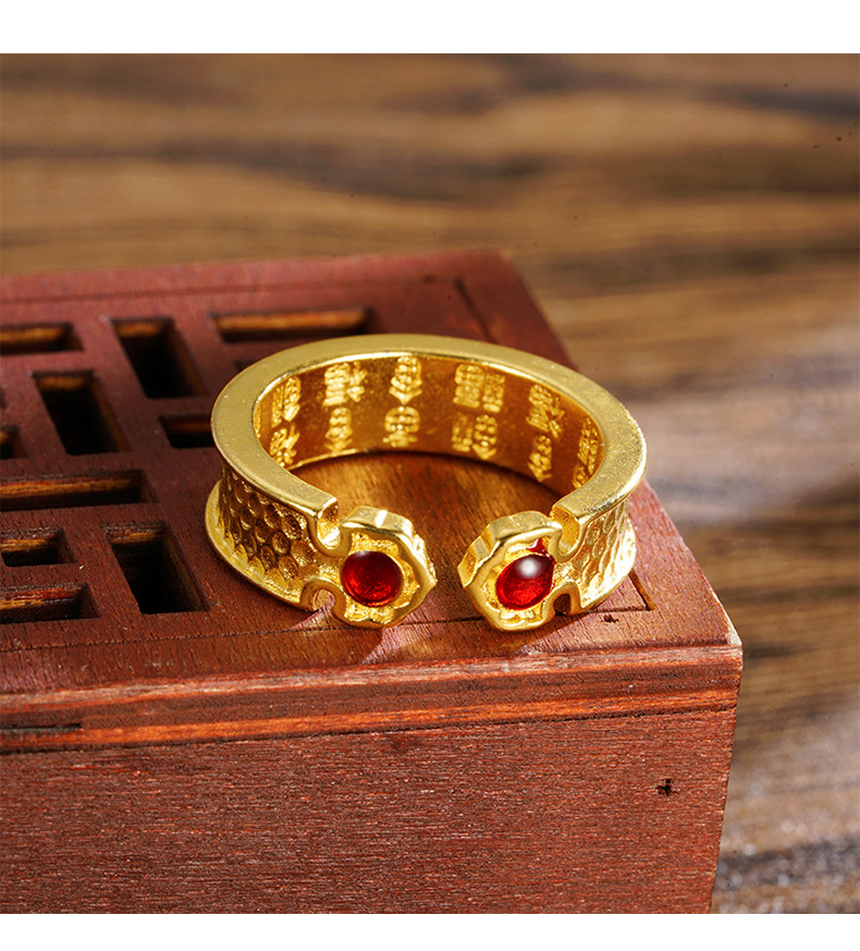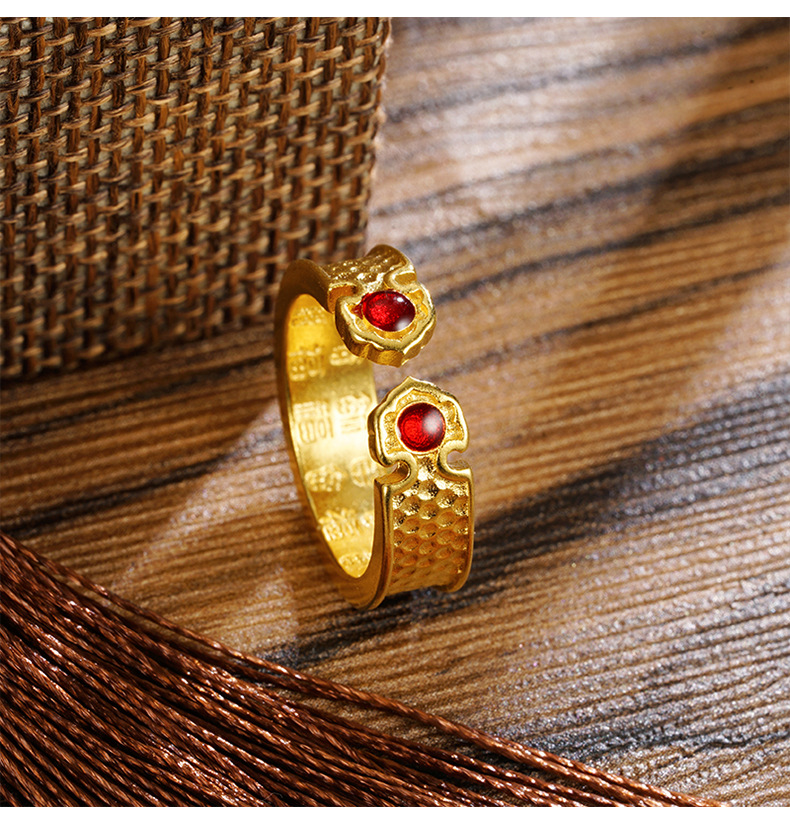 Anillo de oro de arena abierto chino Feng Fu Zi mujer rica y noble Ruyi auspicioso joyas de mano chapadas en oro de cobre retro al por mayor