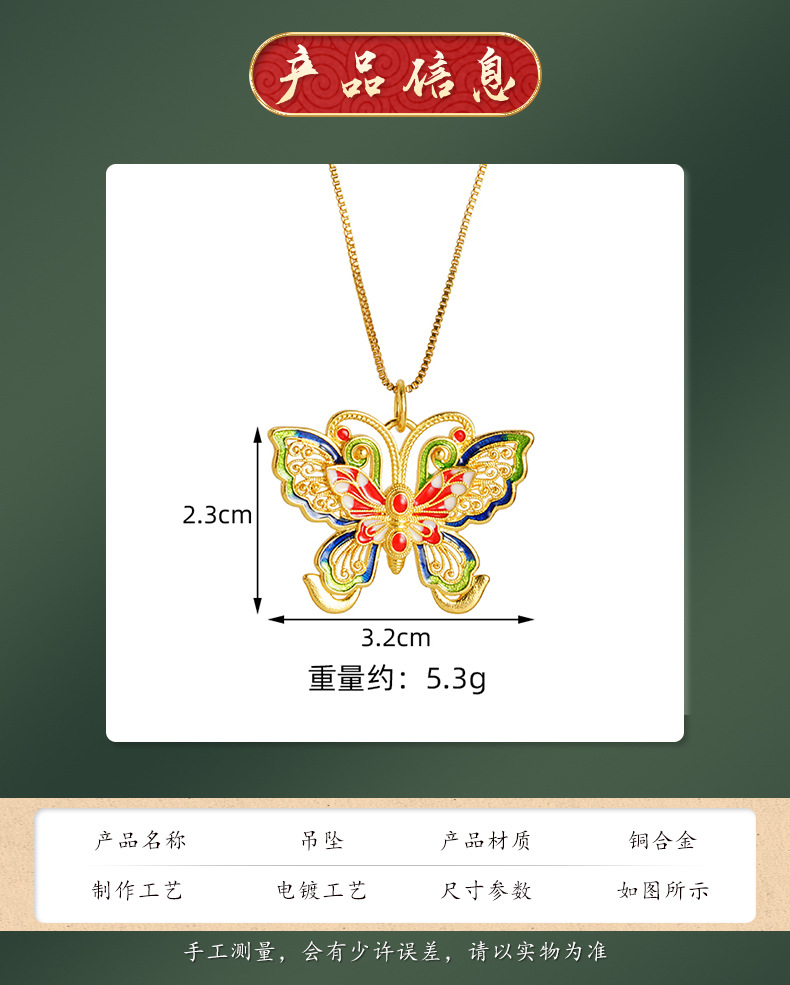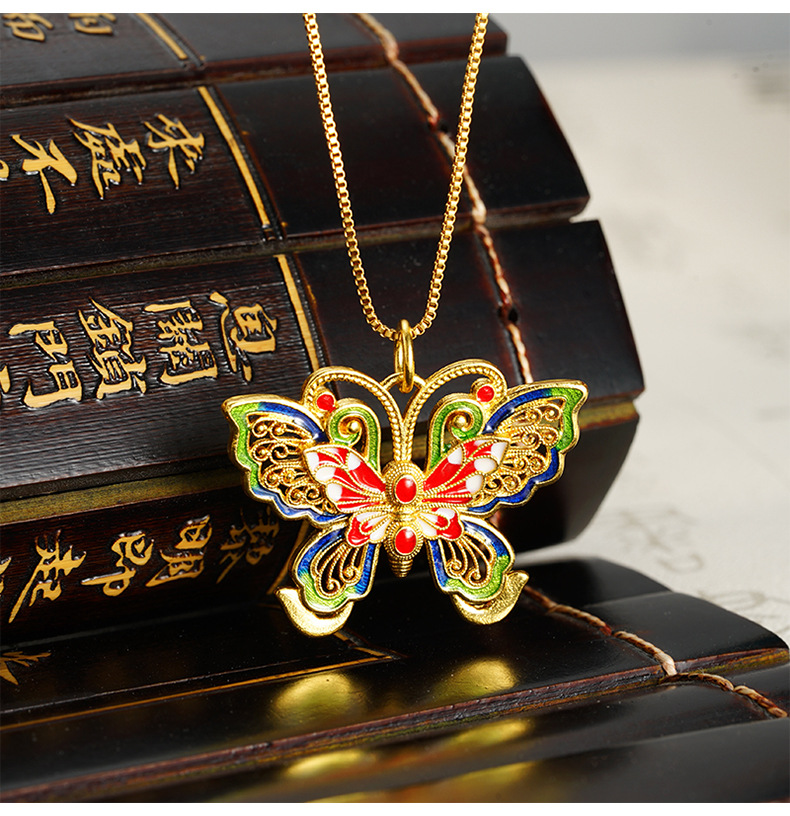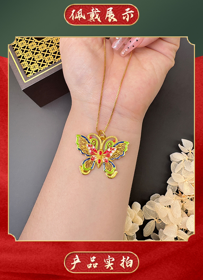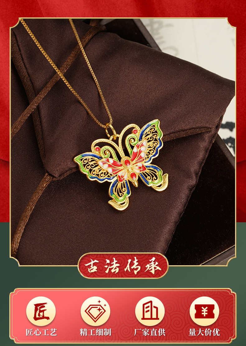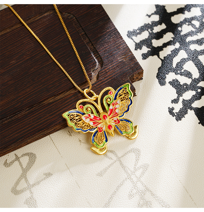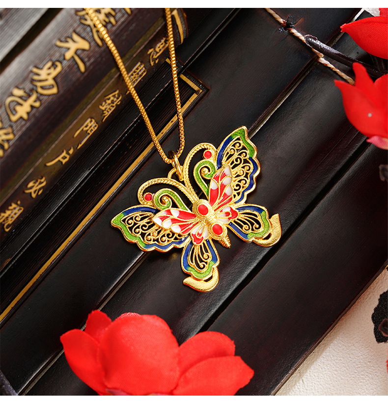 La herencia de la antigua ley de oro de arena vietnamita mariposa hueca color esmalte colgante de moda popular de moda nacional fuente popular