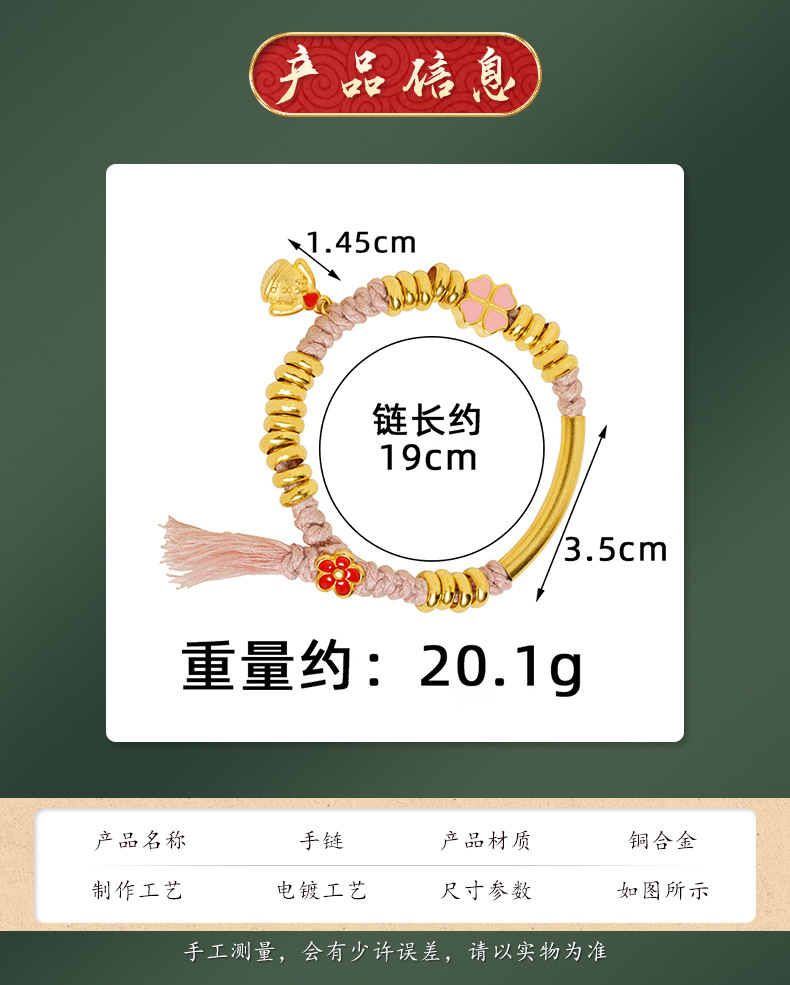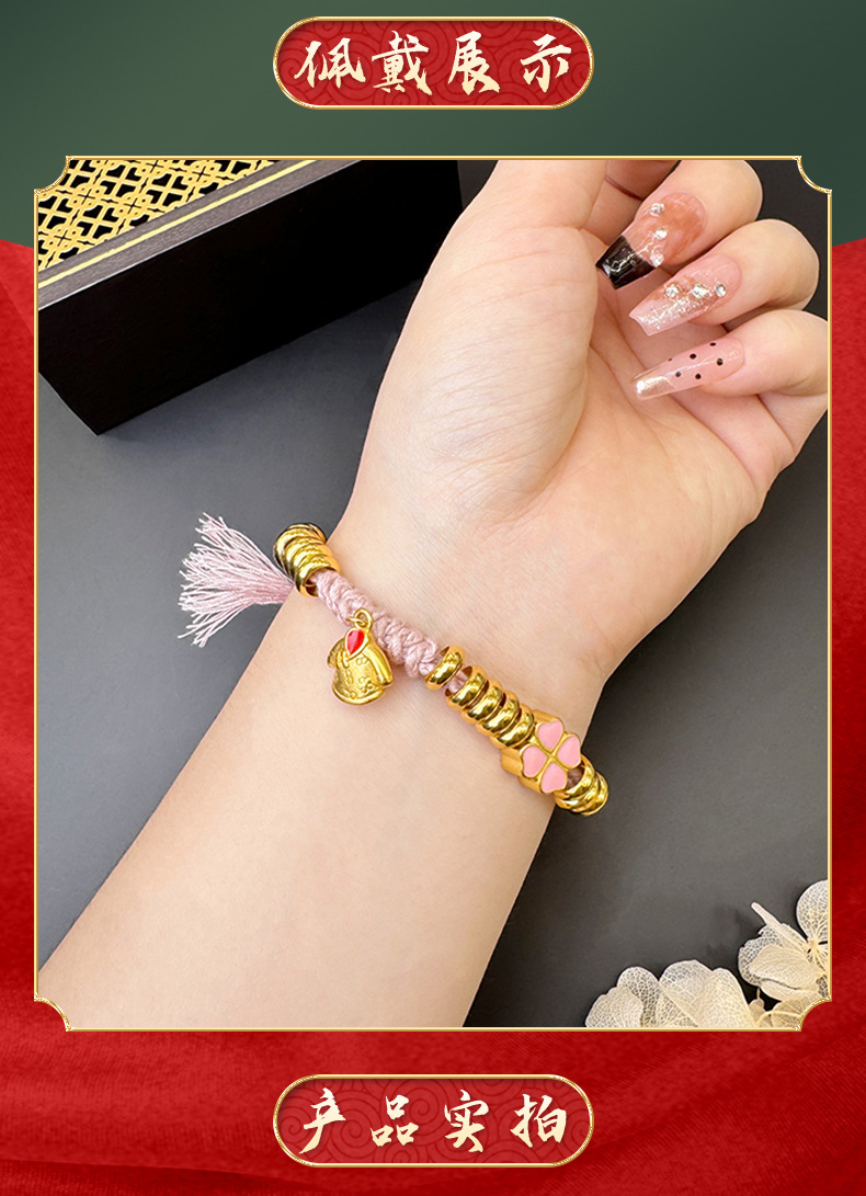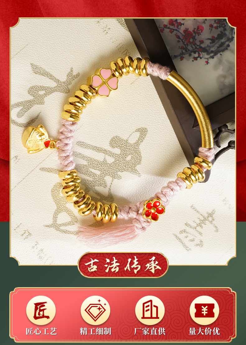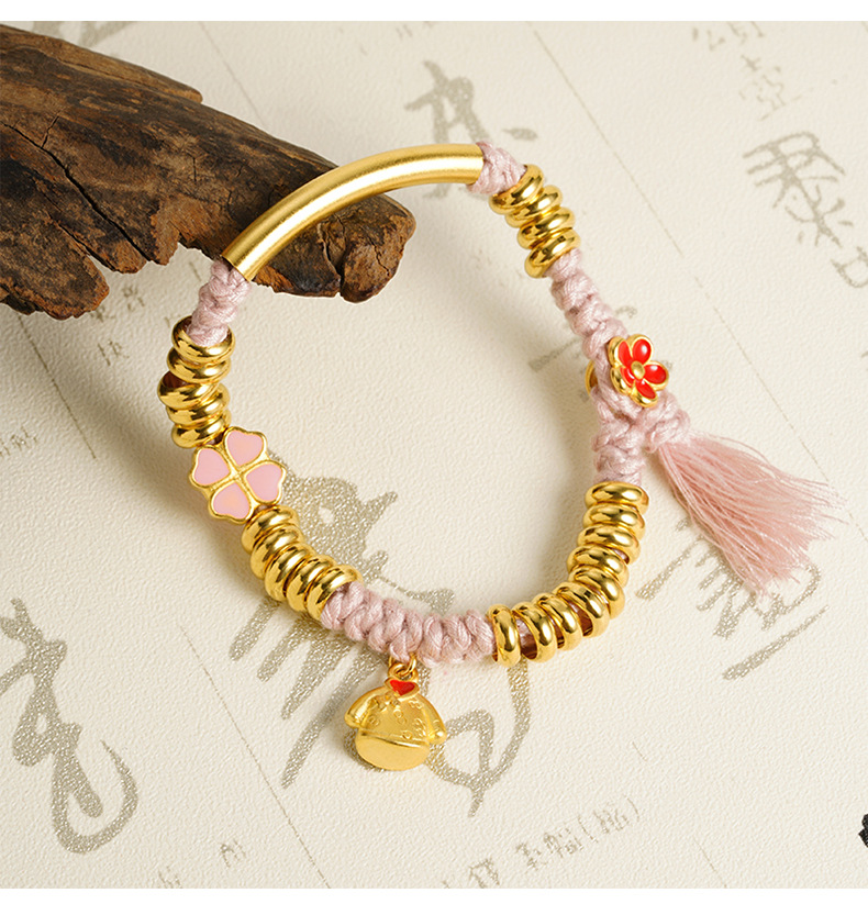 Brazalete de flores de cuatro hojas de oro vietnamita estilo nacional bordilla curva brazalete no se desvanecerá joyas de mano al por mayor transfronterizo