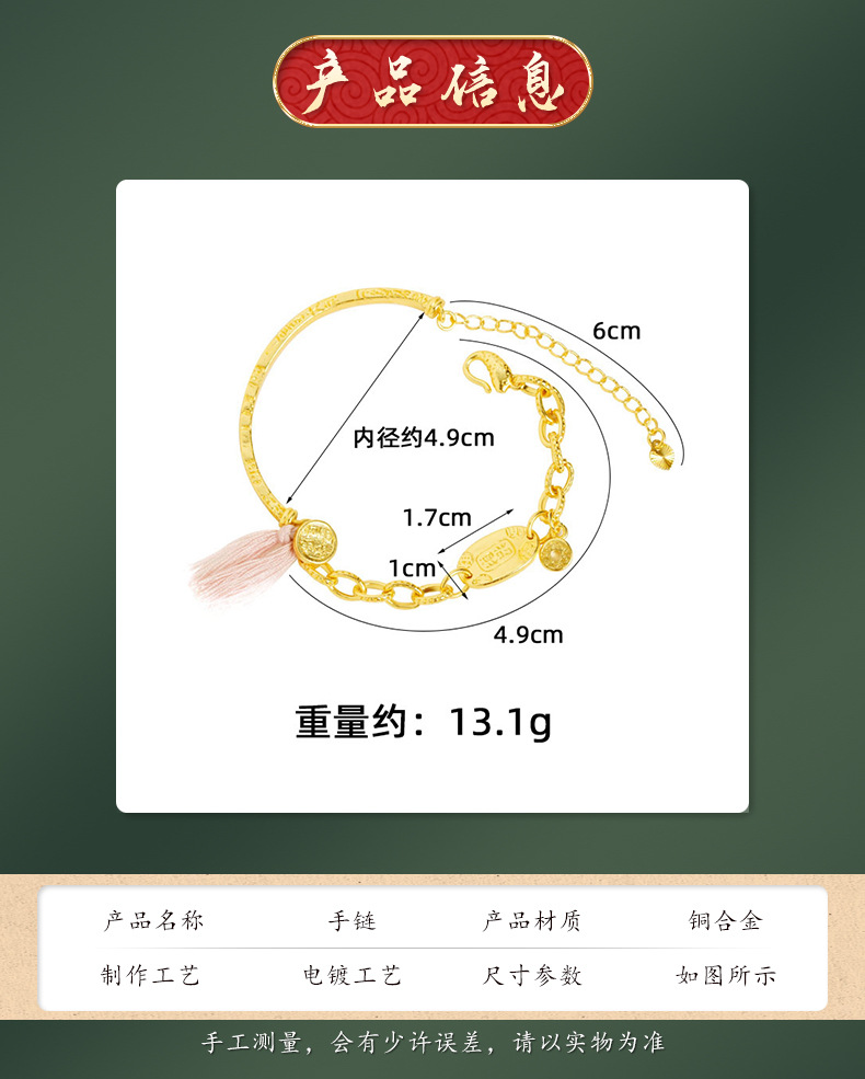 Brazalete de oro de arena para niñas brazalete de alta calidad ajustable extensión de cadena de joyería estilo nacional al por mayor