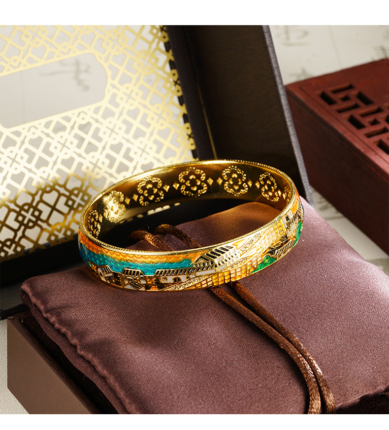 Guochao paisaje palacio viento brazalete muralla oro de arena de Vietnam colorido explosión de transmisión en vivo fábrica al por mayor directamente para el viento de China