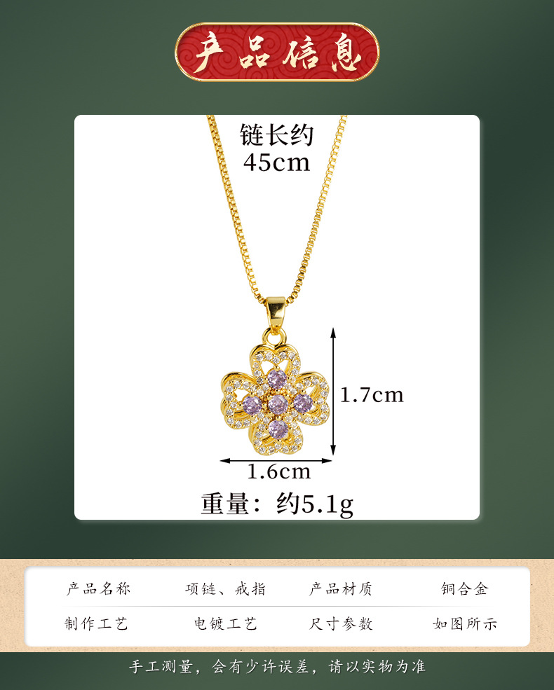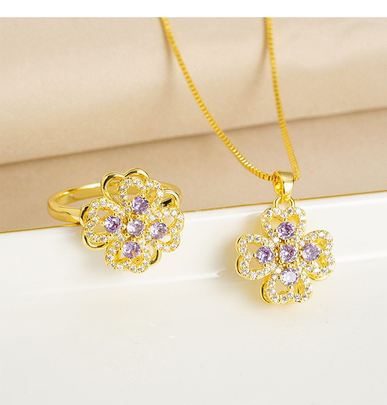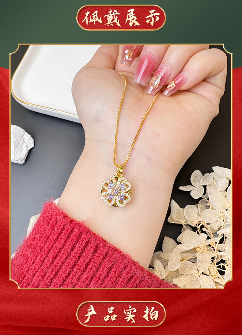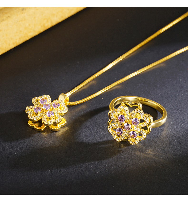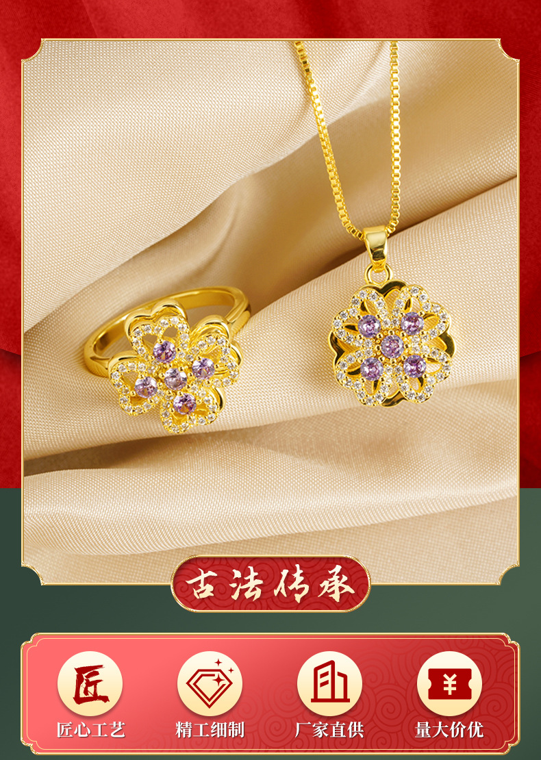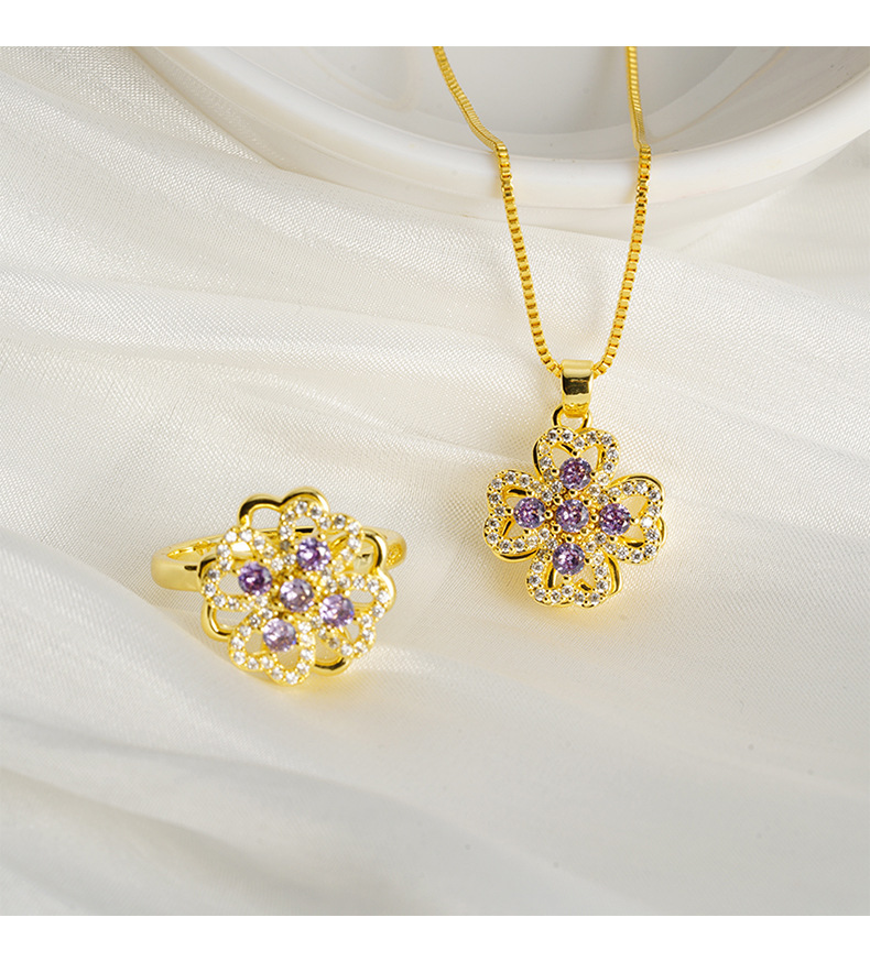Vietnam oro de arena ligero de lujo hueco collar de pétalos de aleación de cobre amatista joyas de nicho de diseño al por mayor