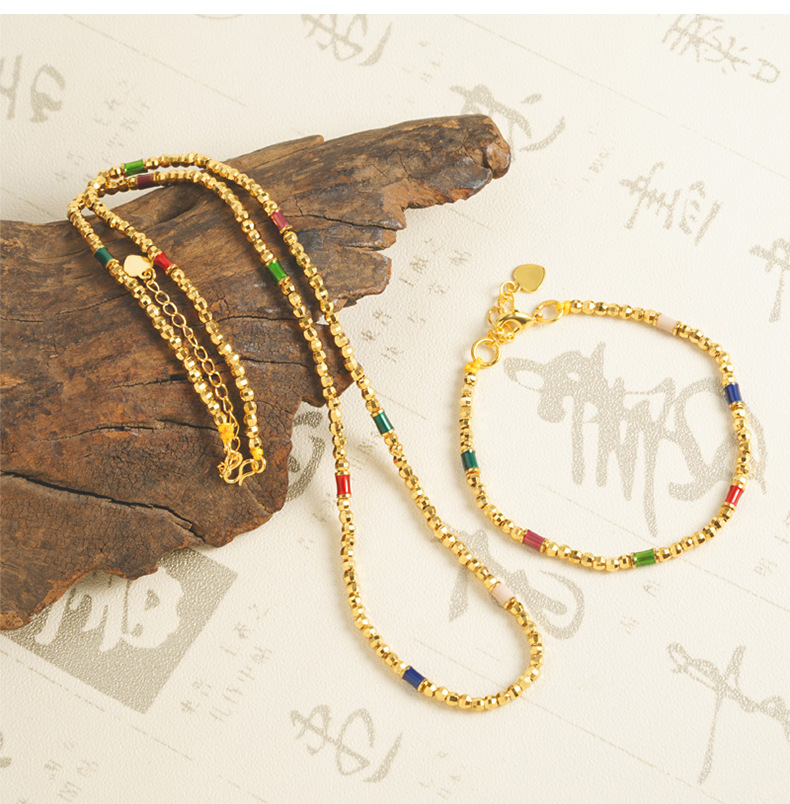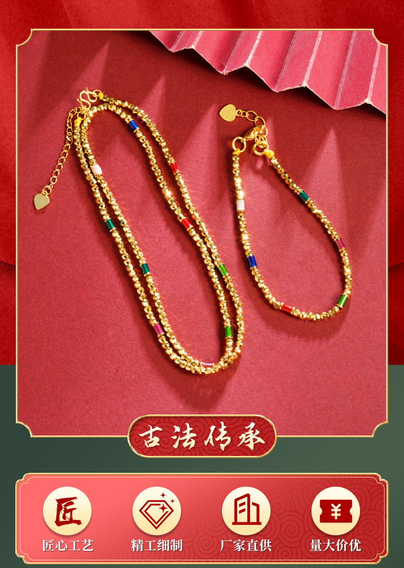 Collar de perlas láser de oro de oro de Vietnam temperamento de alta calidad de lujo ligero pulsera joyería accesorios al por mayor no se desvanecen