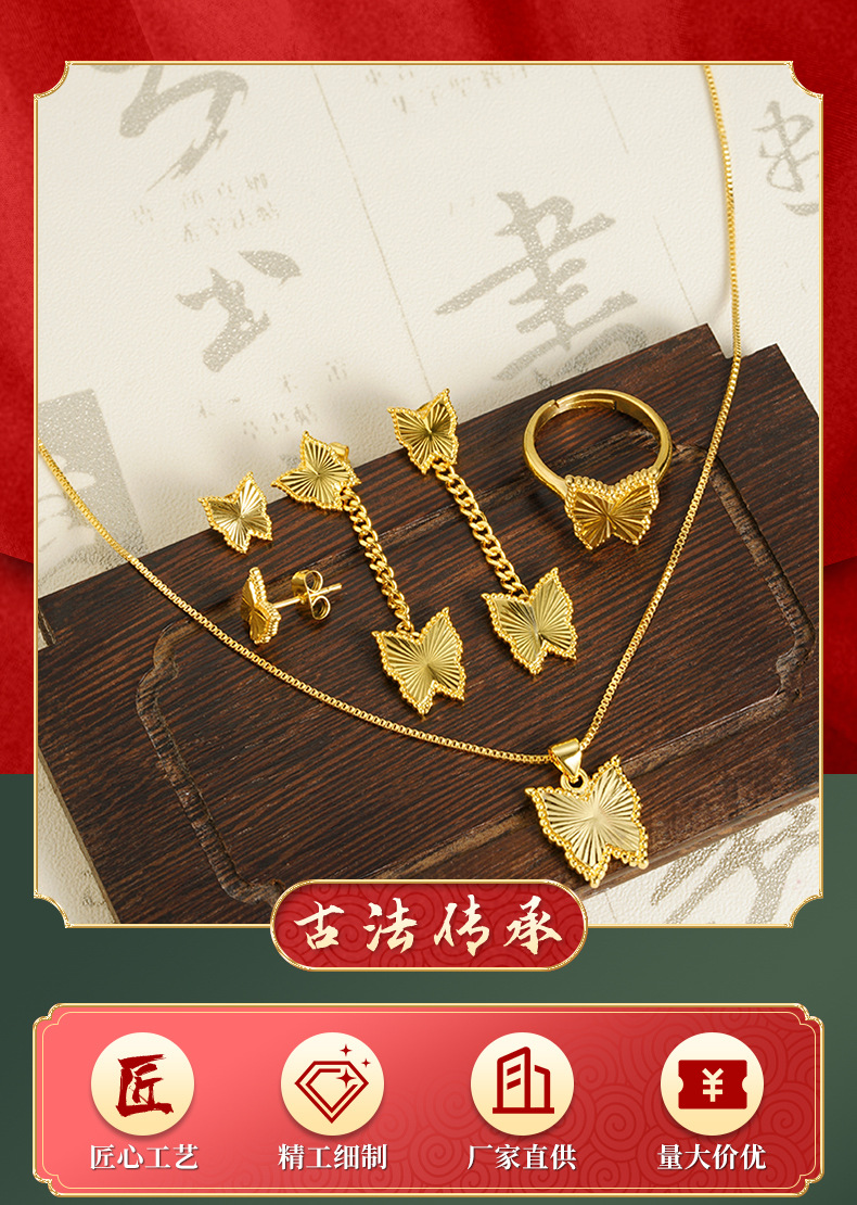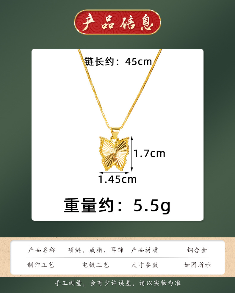 | Color | Anillo de mariposa j2344, clavo de mariposa e2381 (un par), colgante de mariposa e2382 (un par), collar de mariposa x2681 |