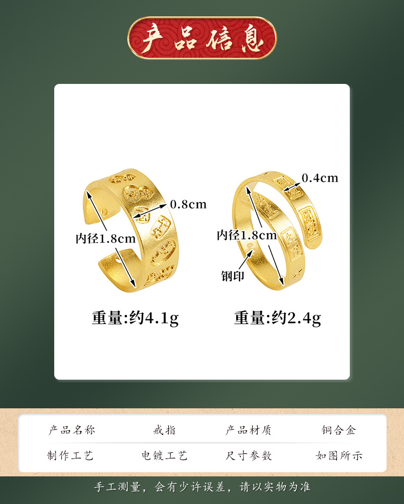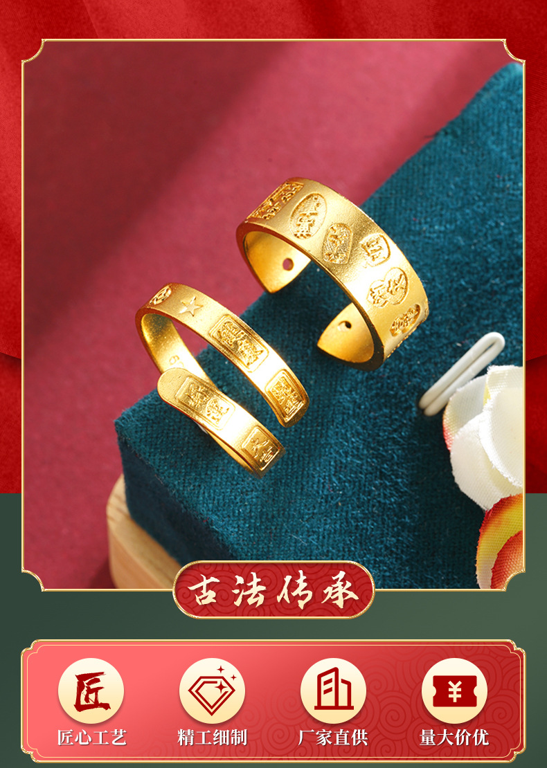 Anillo abierto auspicioso de Vietnam Sha Jin girar buena suerte aleación de cobre no se desvanecerá anillo fábrica de joyas al por mayor