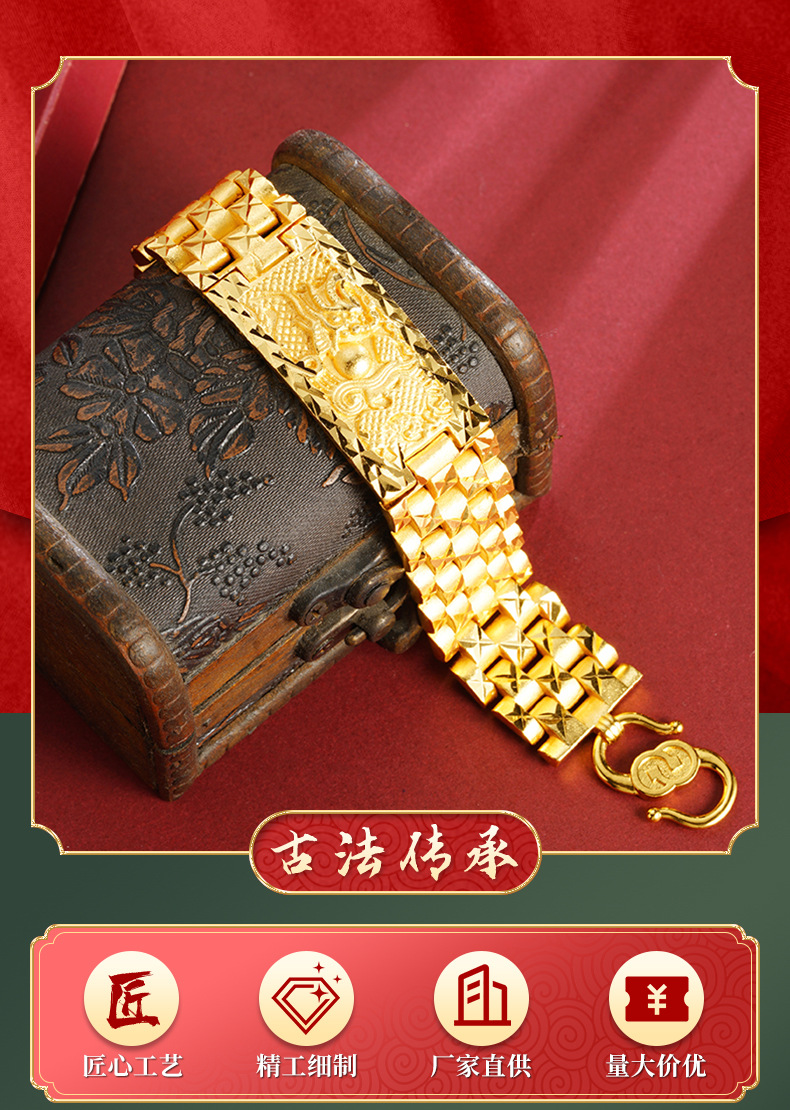 Vietnam Sha Jin Zodiac Long Xiang Yun pulsera fijación de estilo chino joyería accesorios joyería no se desvanecen por mayor