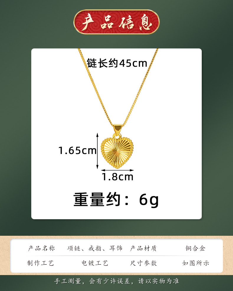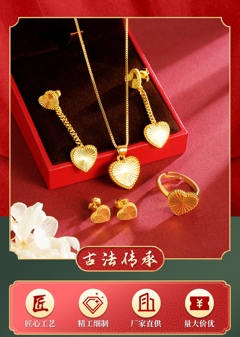 Nuevo collar de oro de arena de Vietnam lujoso ligero corazón de viento joyería de patrón horizontal combinación de pernos de orejas de mujer fábrica directa suministro al por mayor