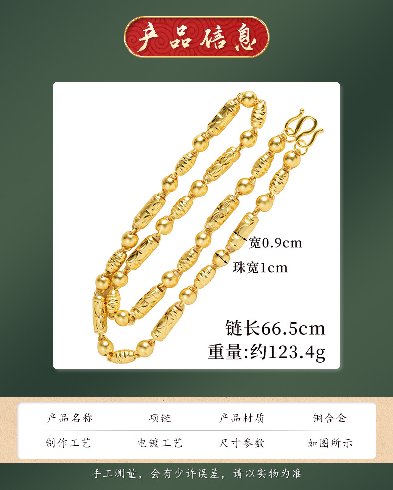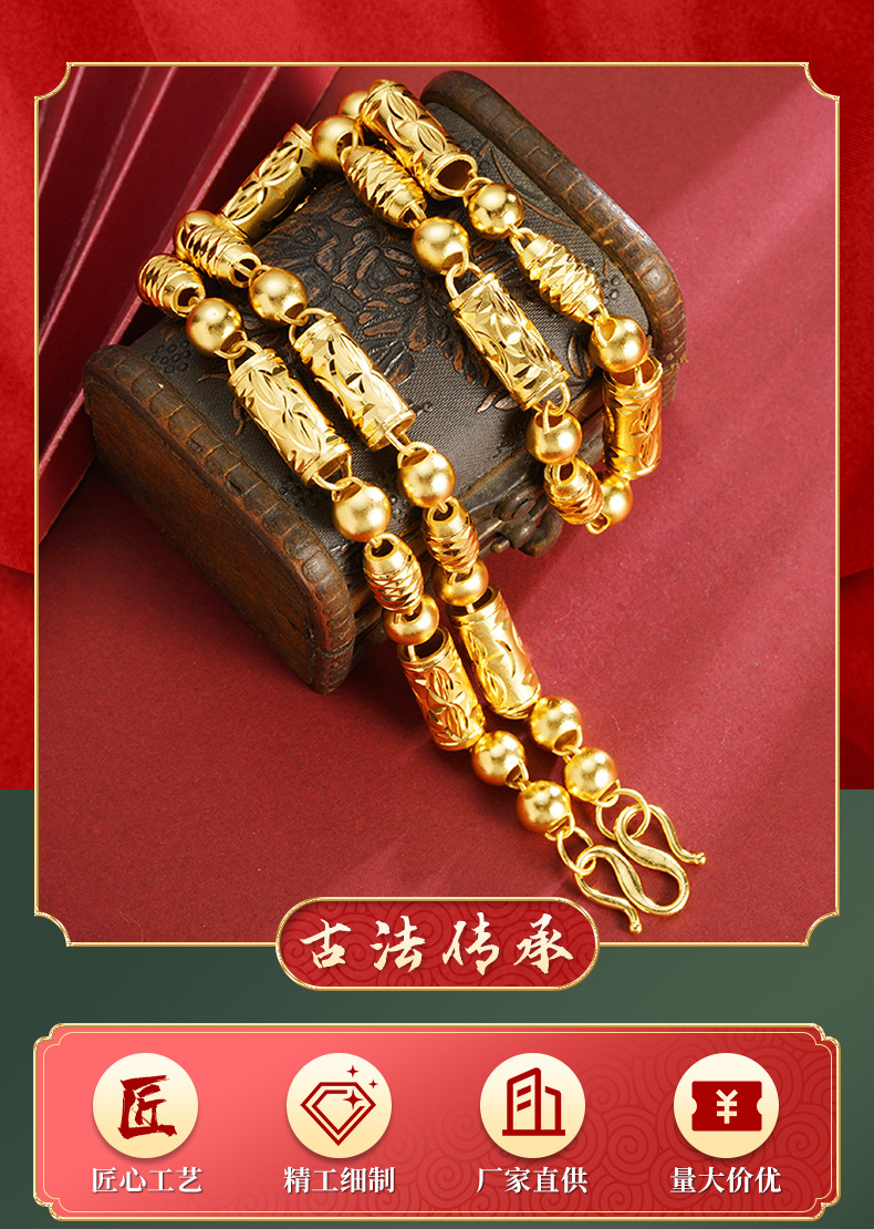 Collar de oro de arena vietnamita masculino, estilo retro chino, estilo ligero y lujoso, joyas no se desvanecen, accesorios Yiwu