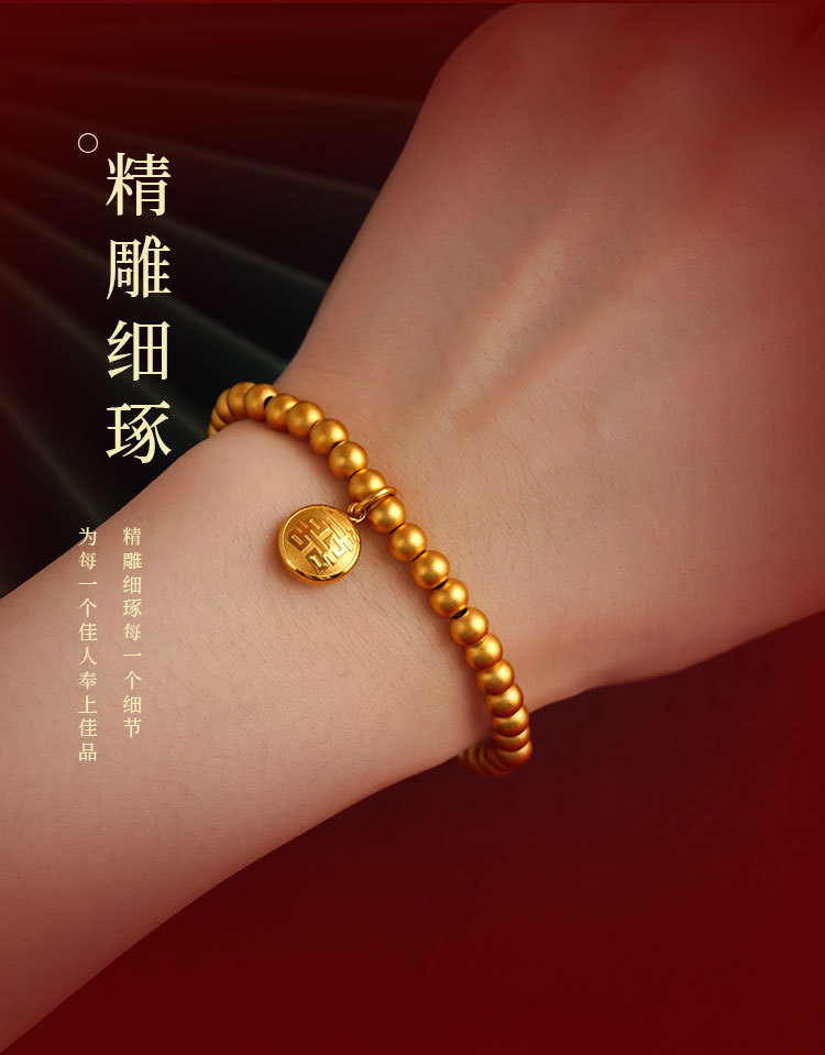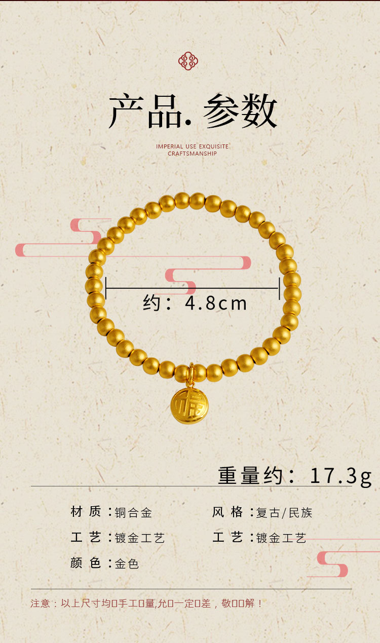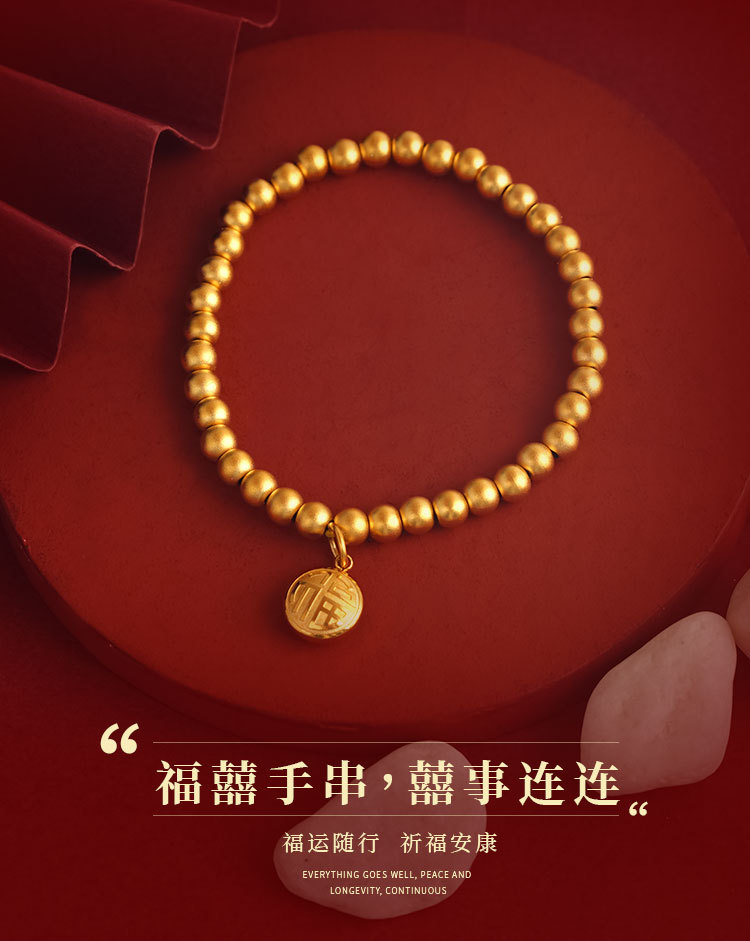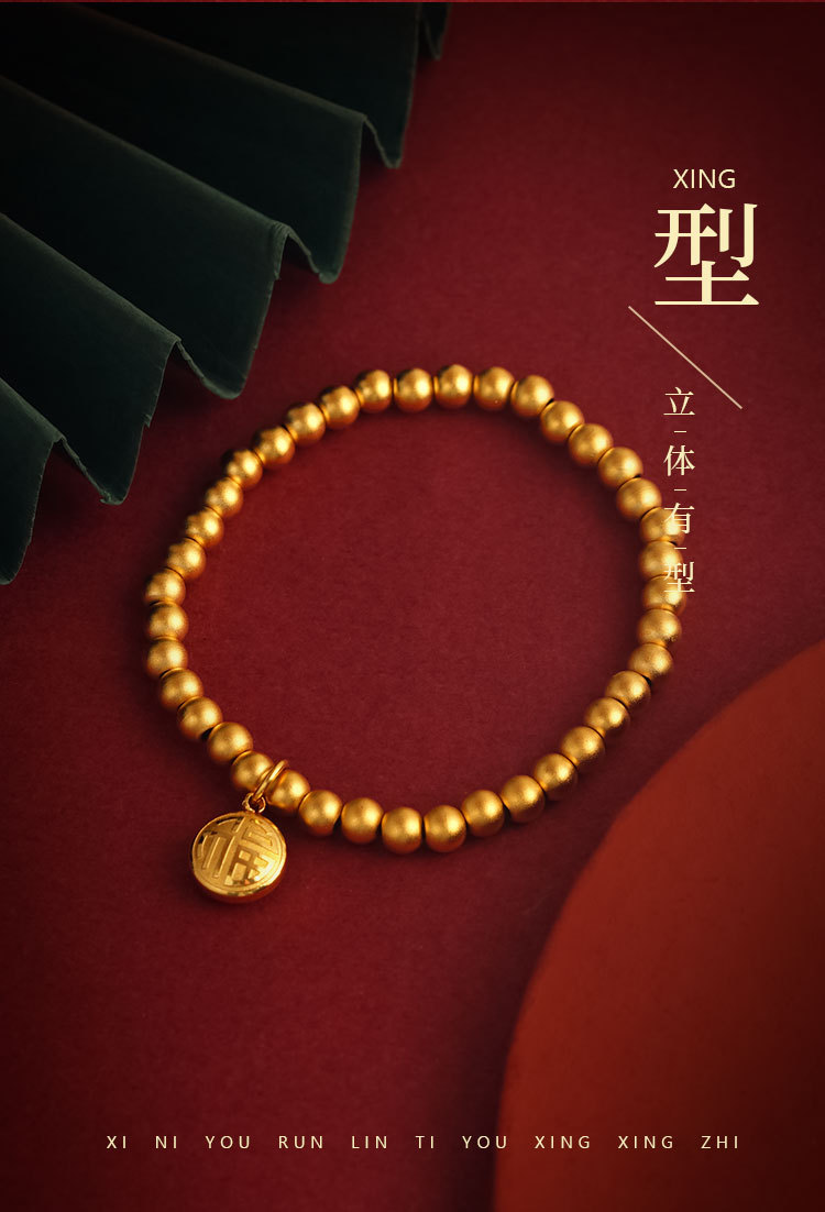 Nueva aleación de cobre antiguo francés Fuxi granos redondos pulsera llena de felicidad pulsera cuerda elástica pulsera joyería