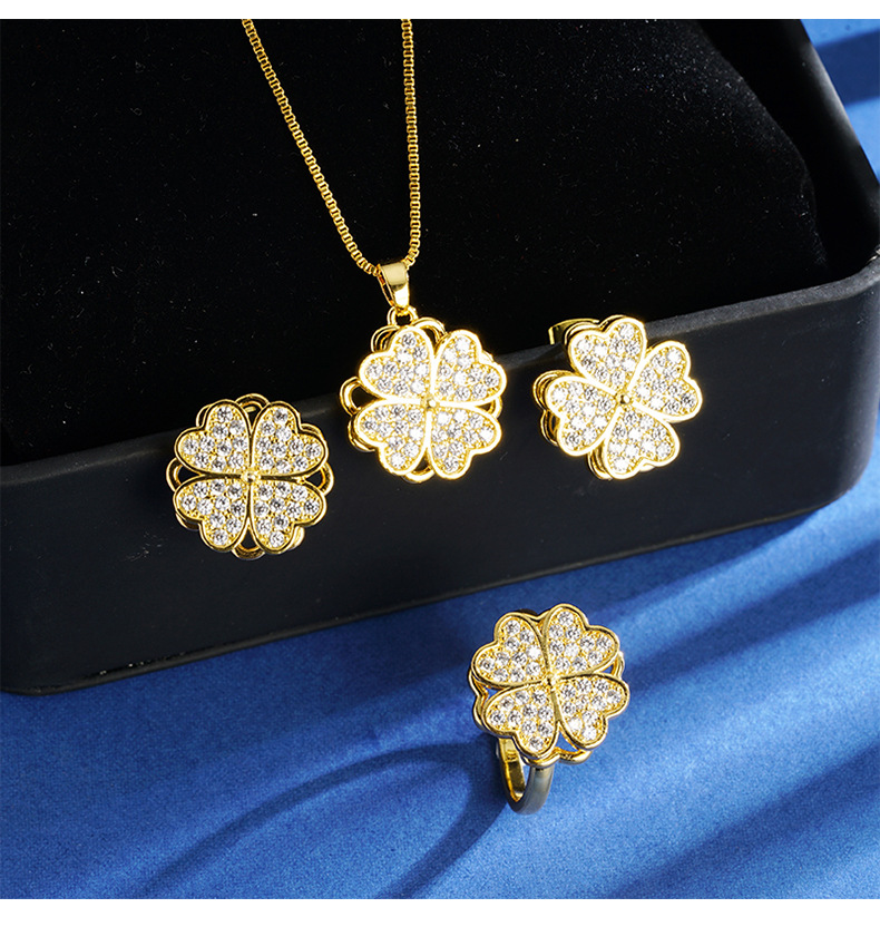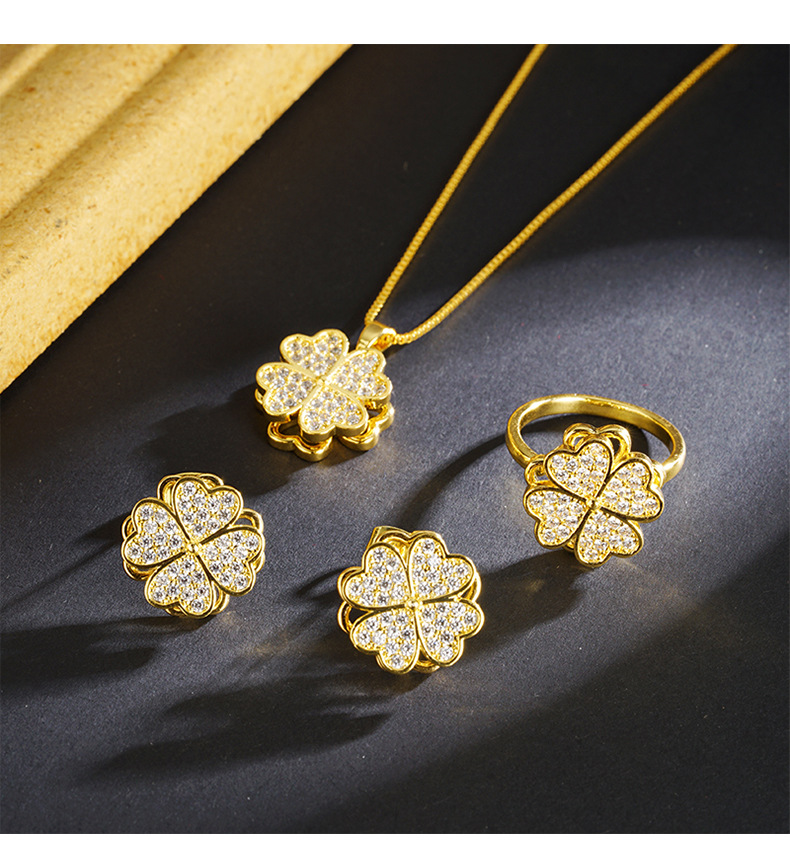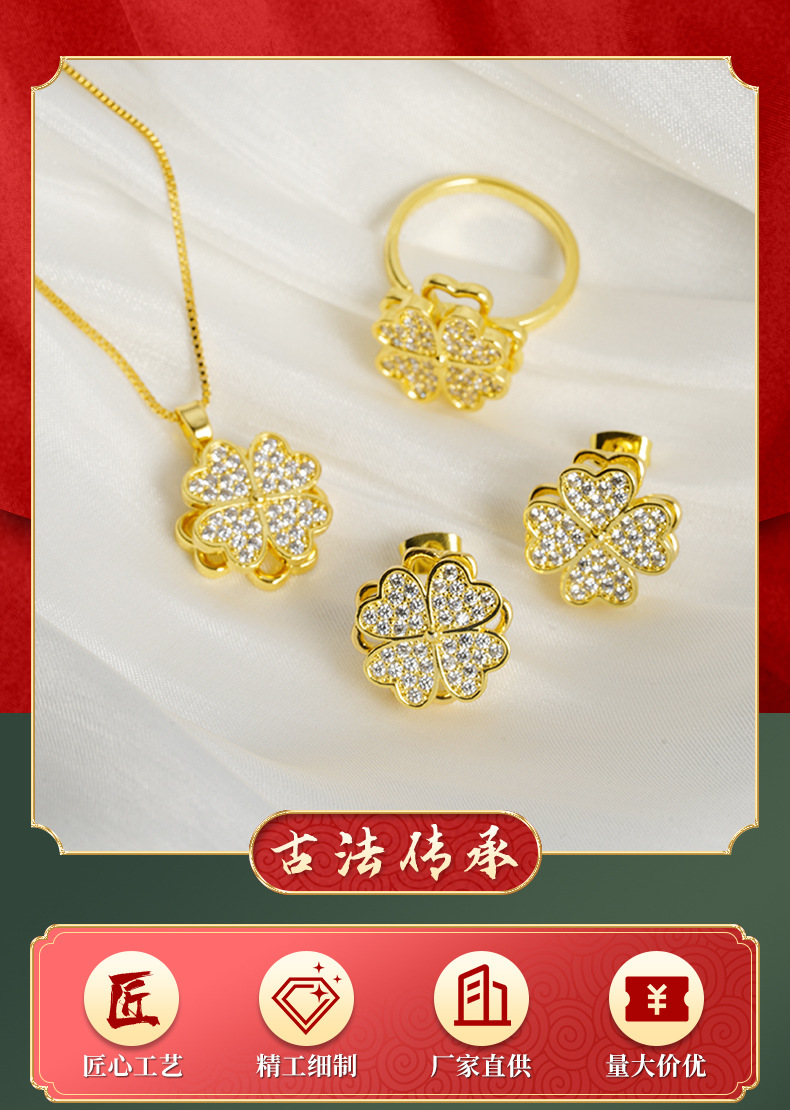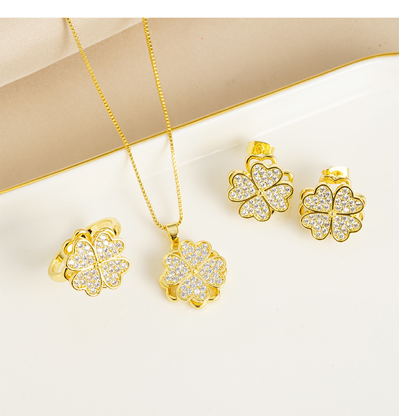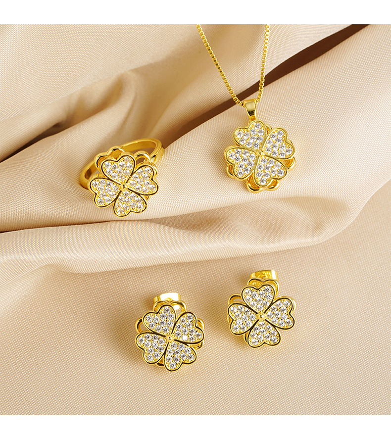 Nuevos productos ins tetrahedra Hao con diamantes populares collares anillo conjunto pendientes de oro vietnamita aleación de cobre preservación de color