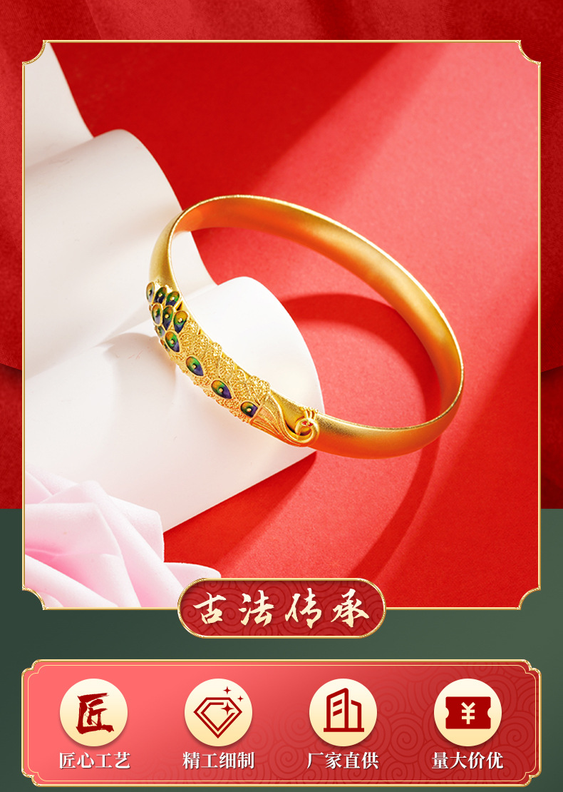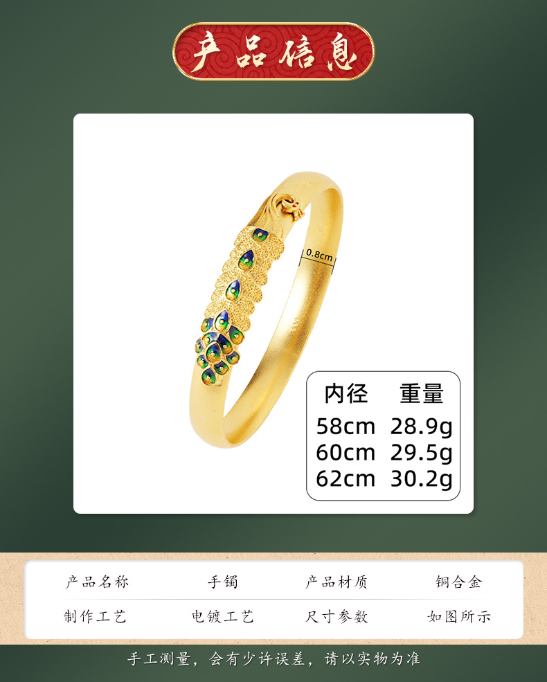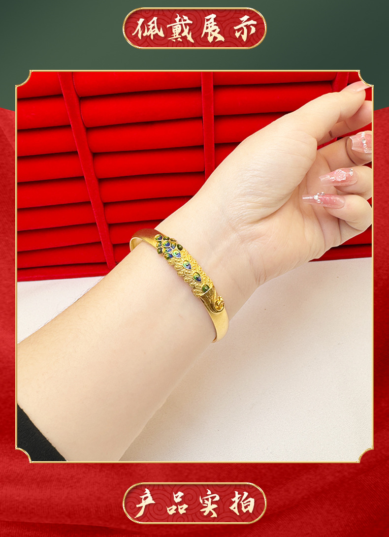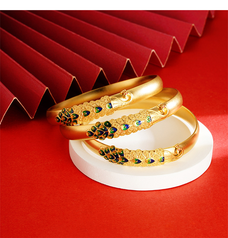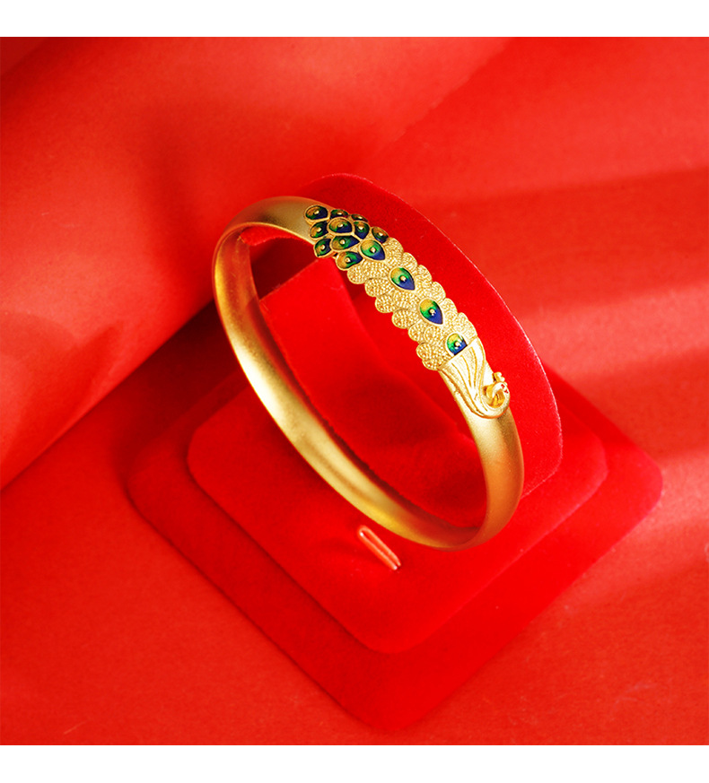 Brazalete de cobre de esmalte de pavo real chino, brazalete de esmalte de oro antiguo de Vietnam, joyería al por mayor