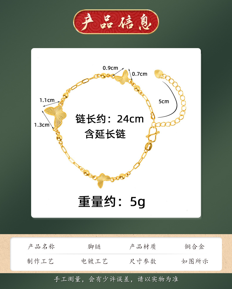 Vietnam tobillar de oro de arena lujoso ligero verano alto sentido mariposa mujer alto sentido accesorios de playa fábrica al por mayor